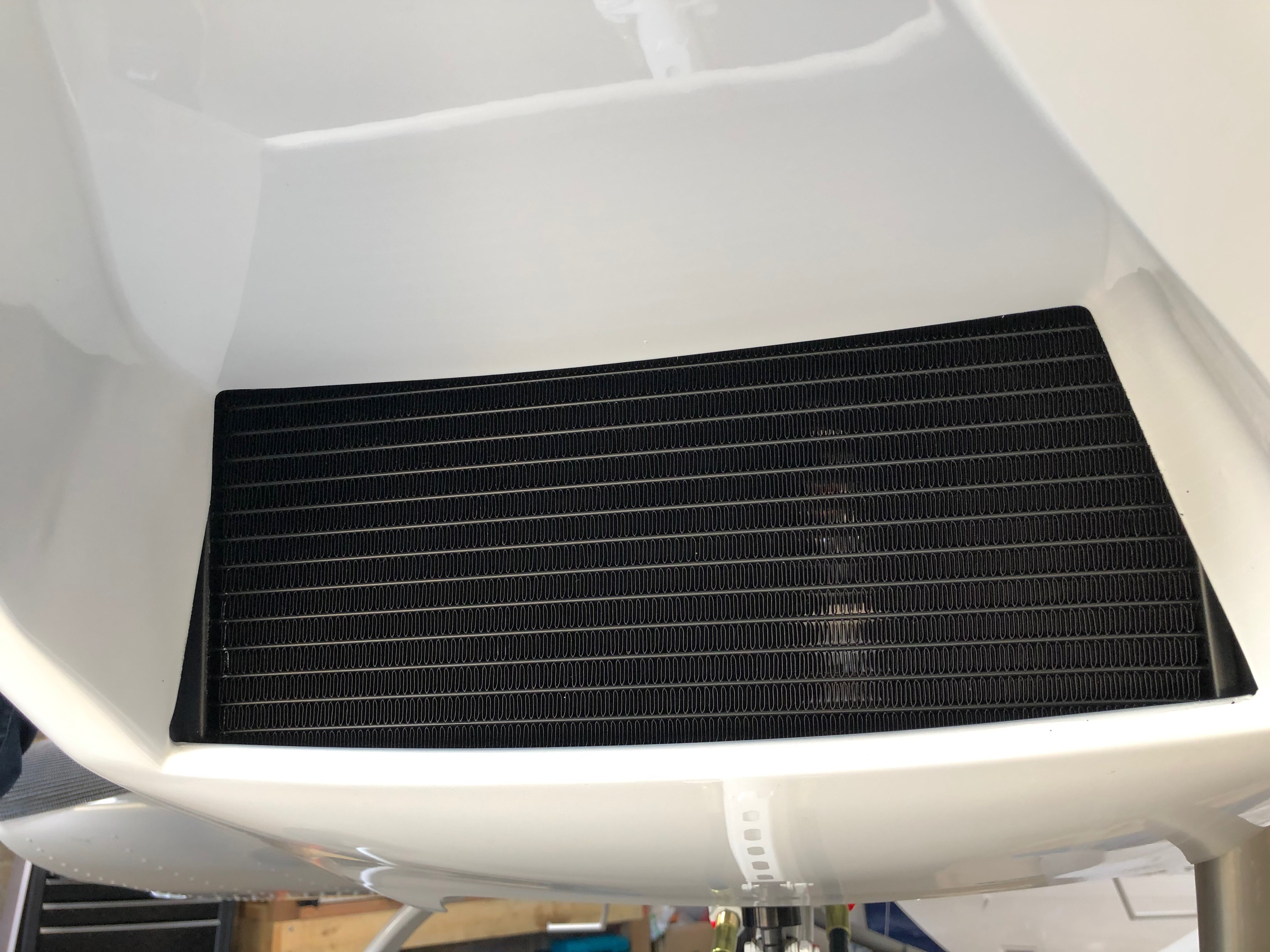 From the rear, the radiator brackets disconnected to allow movement for the trial fit.