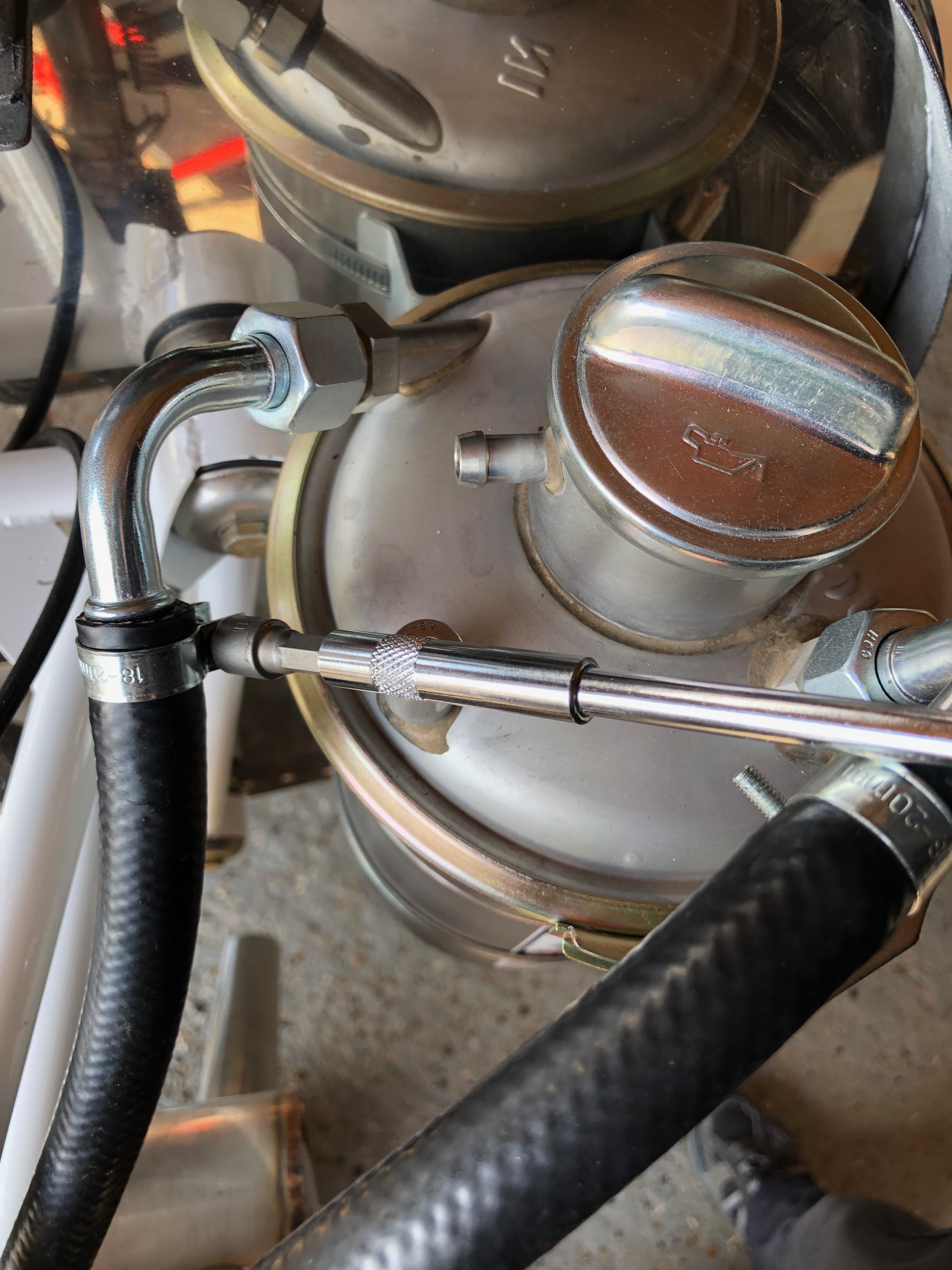 Fire sleeving should protect the oil hose but I will be adding some exhaust wrap to further protect the pipe. The oil system is now complete.
