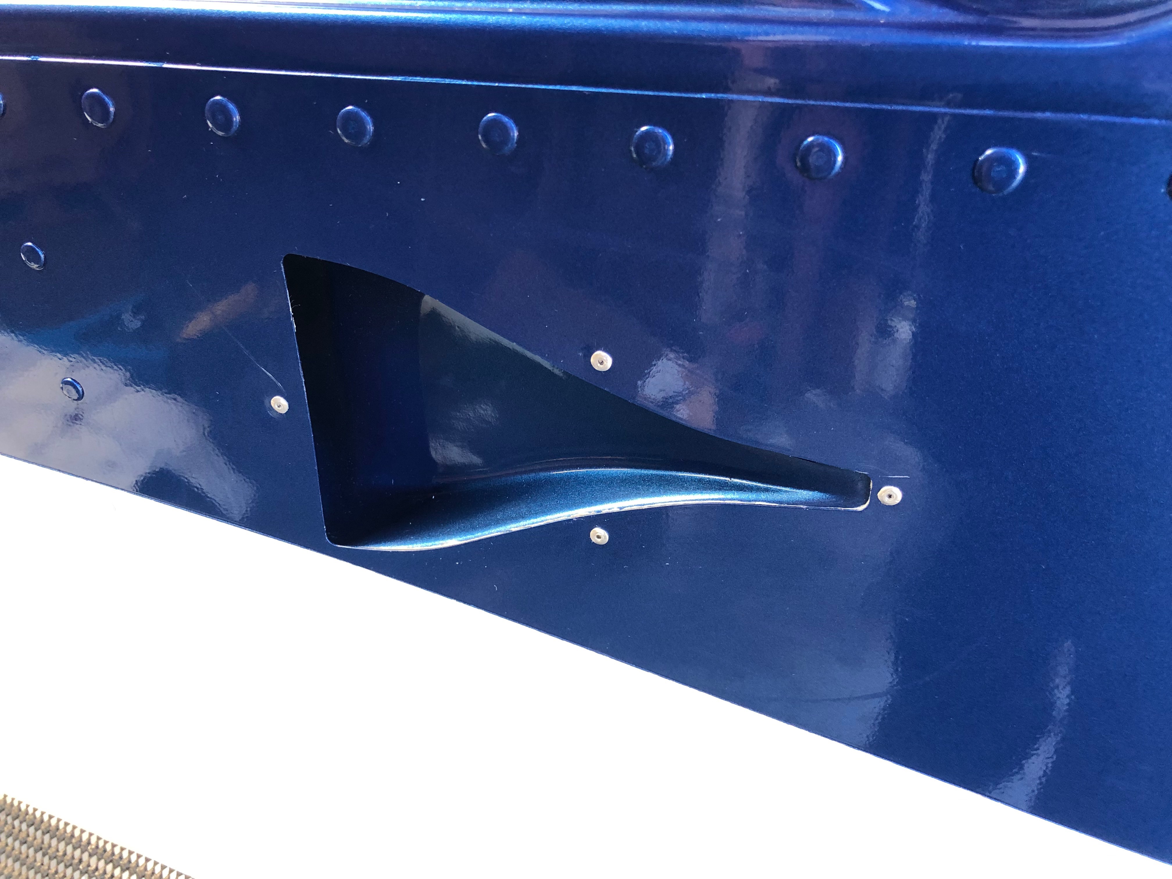 When I riveted the right side NACA duct I slipped twice and scratched the paintwork slightly which will need touching up and polishing out at some point. To stop this happening again I applied some asking tape around the rivet.