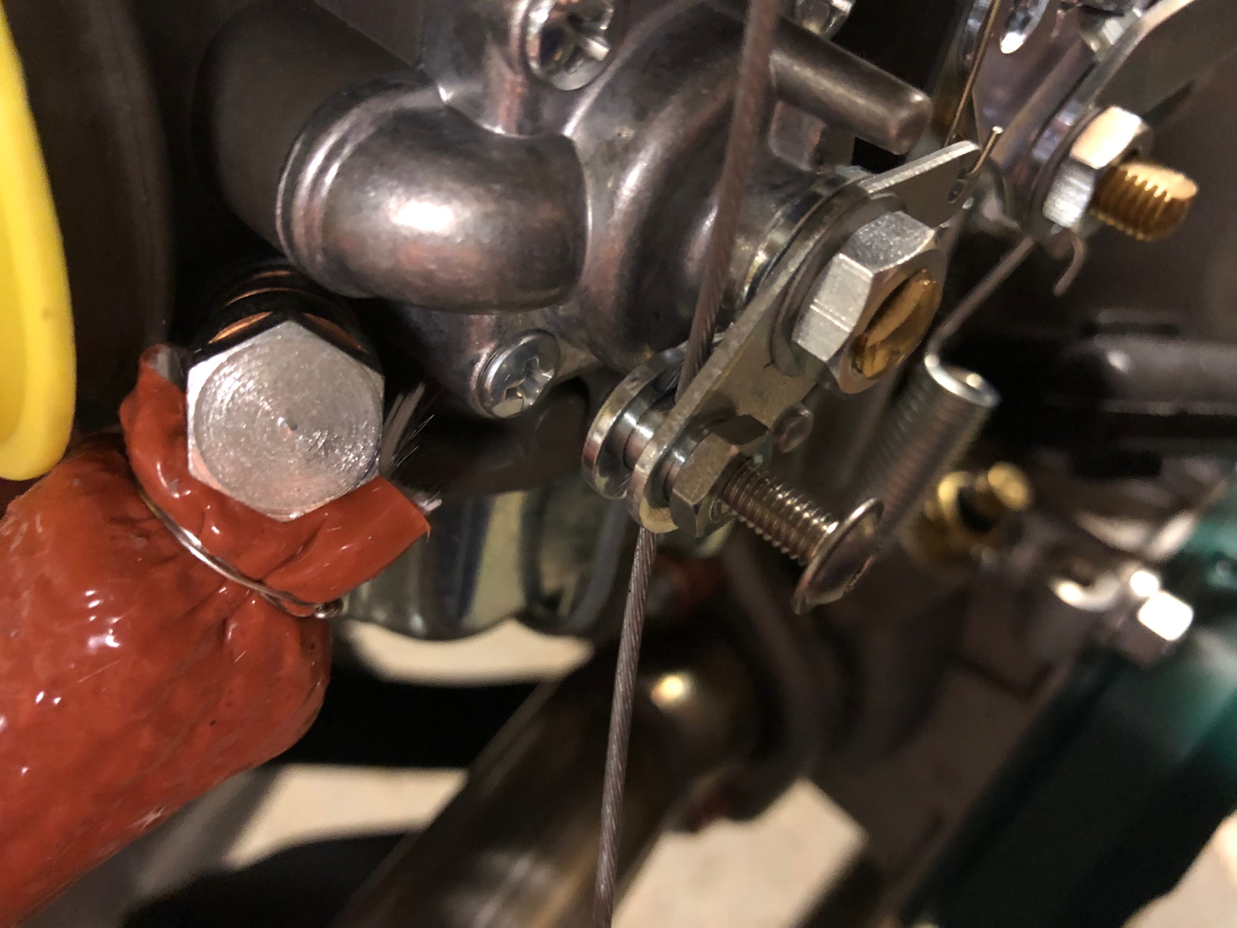 The throttle and choke cables need to be adjusted, tightened and cut to length.