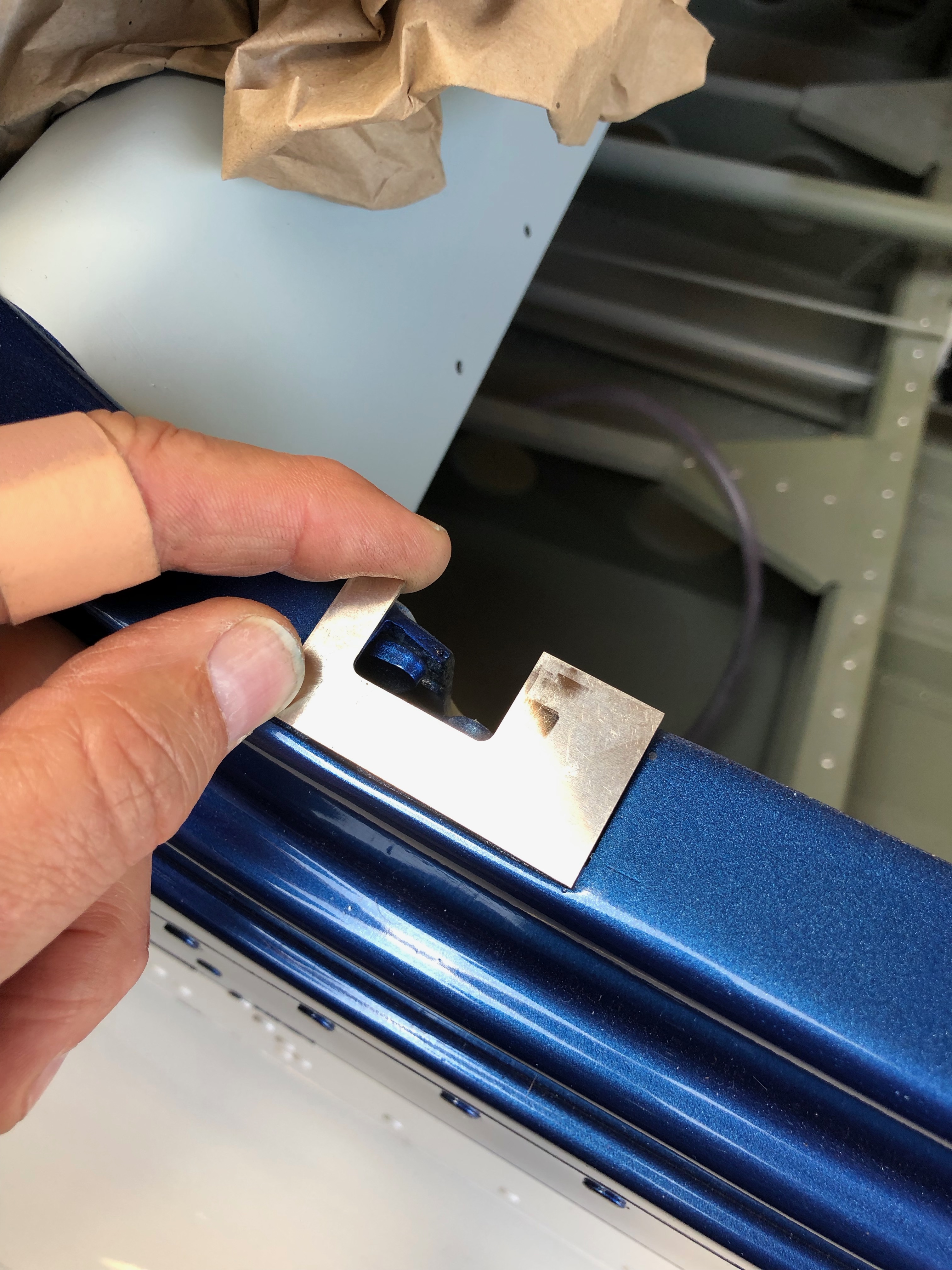 The servo is positioned in the recess and cleco’d in place so the control rods can be adjusted correctly.