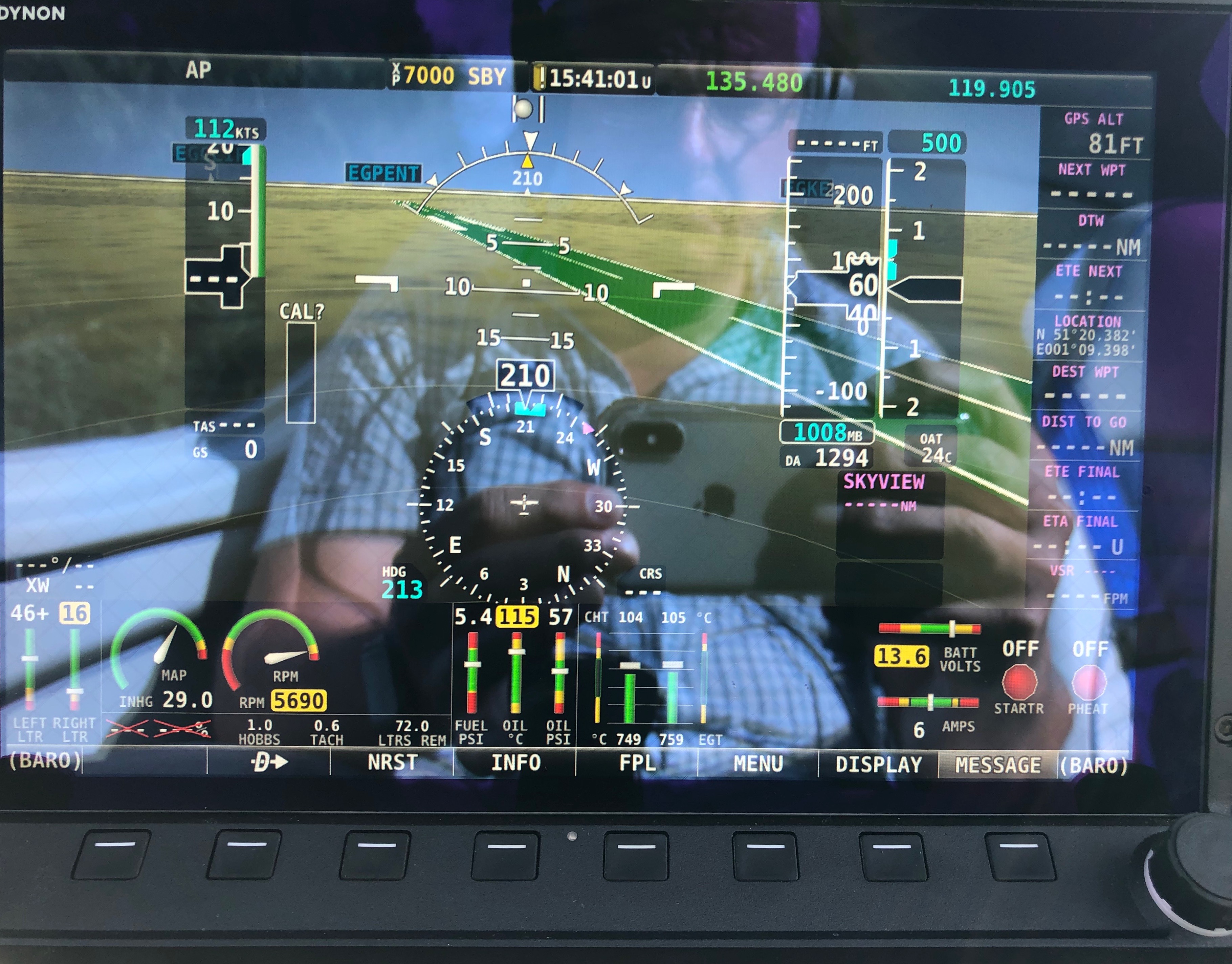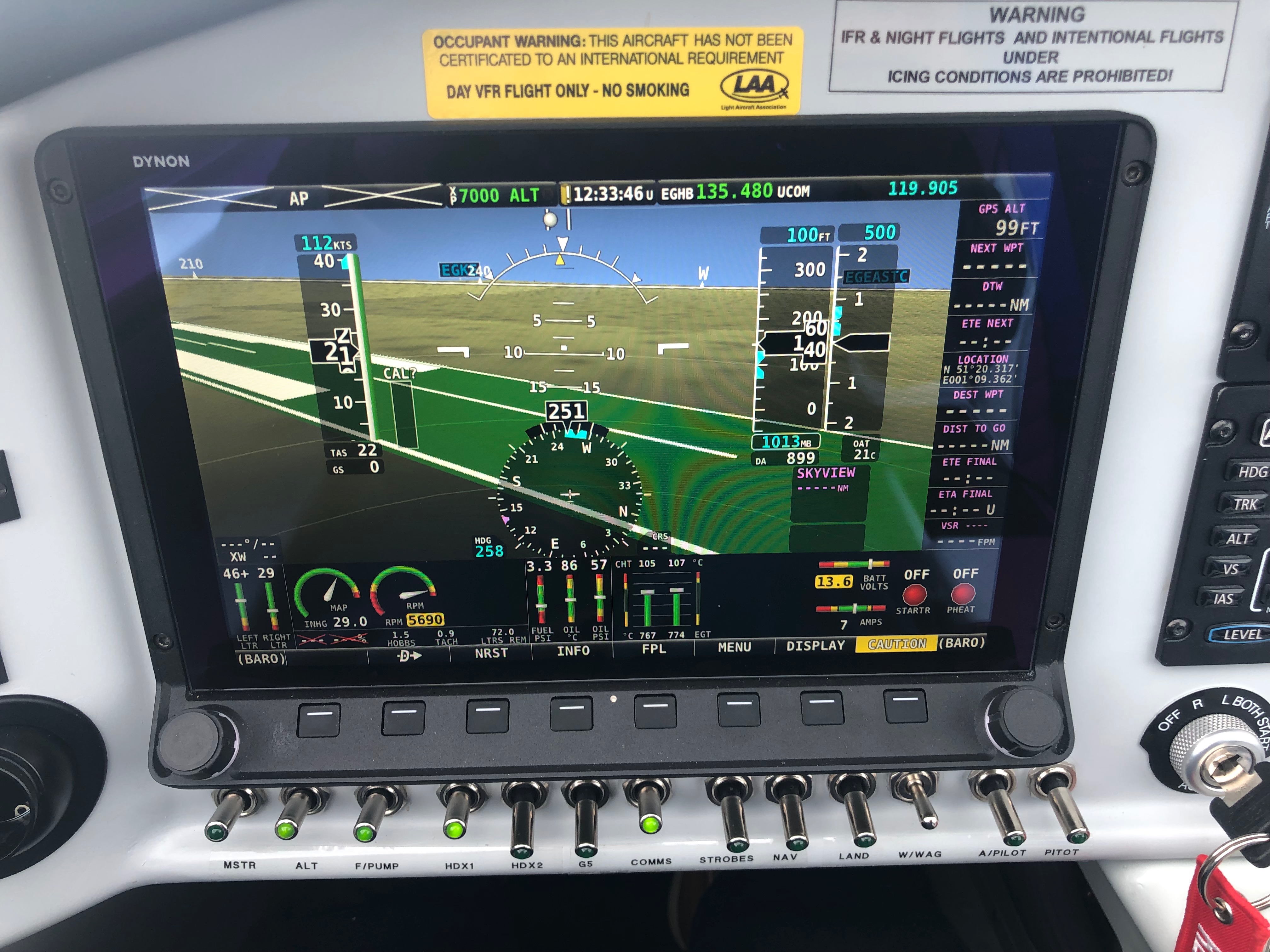 Wiring up the transducer into the EMS220 is straightforward using 3 wires, a 12v supply, signal and ground. The SkyView panels need to be configured with the ‘K’ factor of the FT60 unit. This is the number of rotations per US Gallon. Entering the config screen I found that the SkyView had already detected the unit and configured itself which was handy.