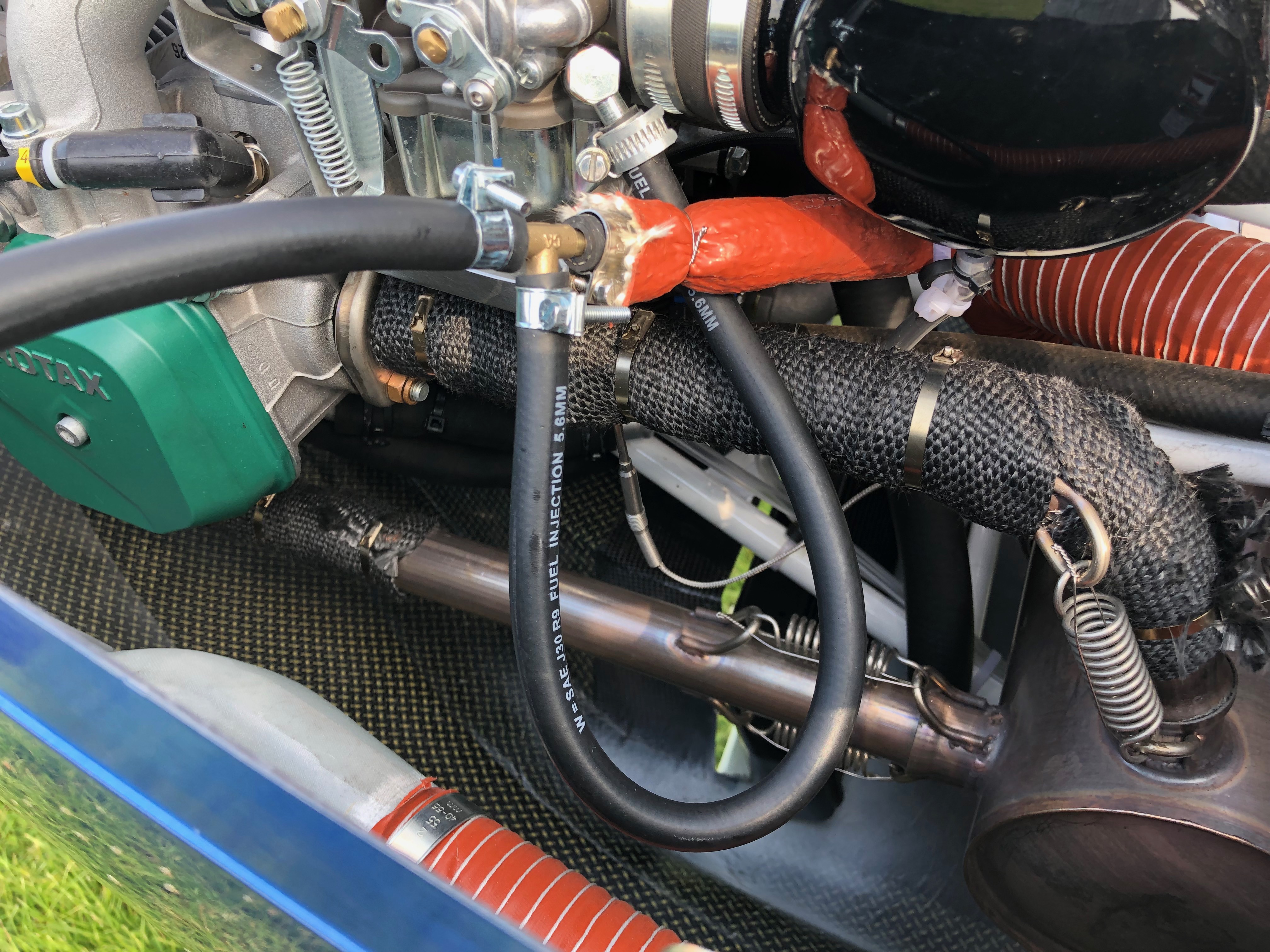 Once configured a check needs to be carried out between measured and actual fuel flow. I removed one of the banjos from the carb and captured the flow in a measuring jug to carry this out. With no restriction the electric fuel pump delivered 66 litres per minute and when restricted to give 3 psi within the fuel system the flow rate was 44 litres per minute. This is significantly more than the 27 rpm that the engine needs at full throttle.