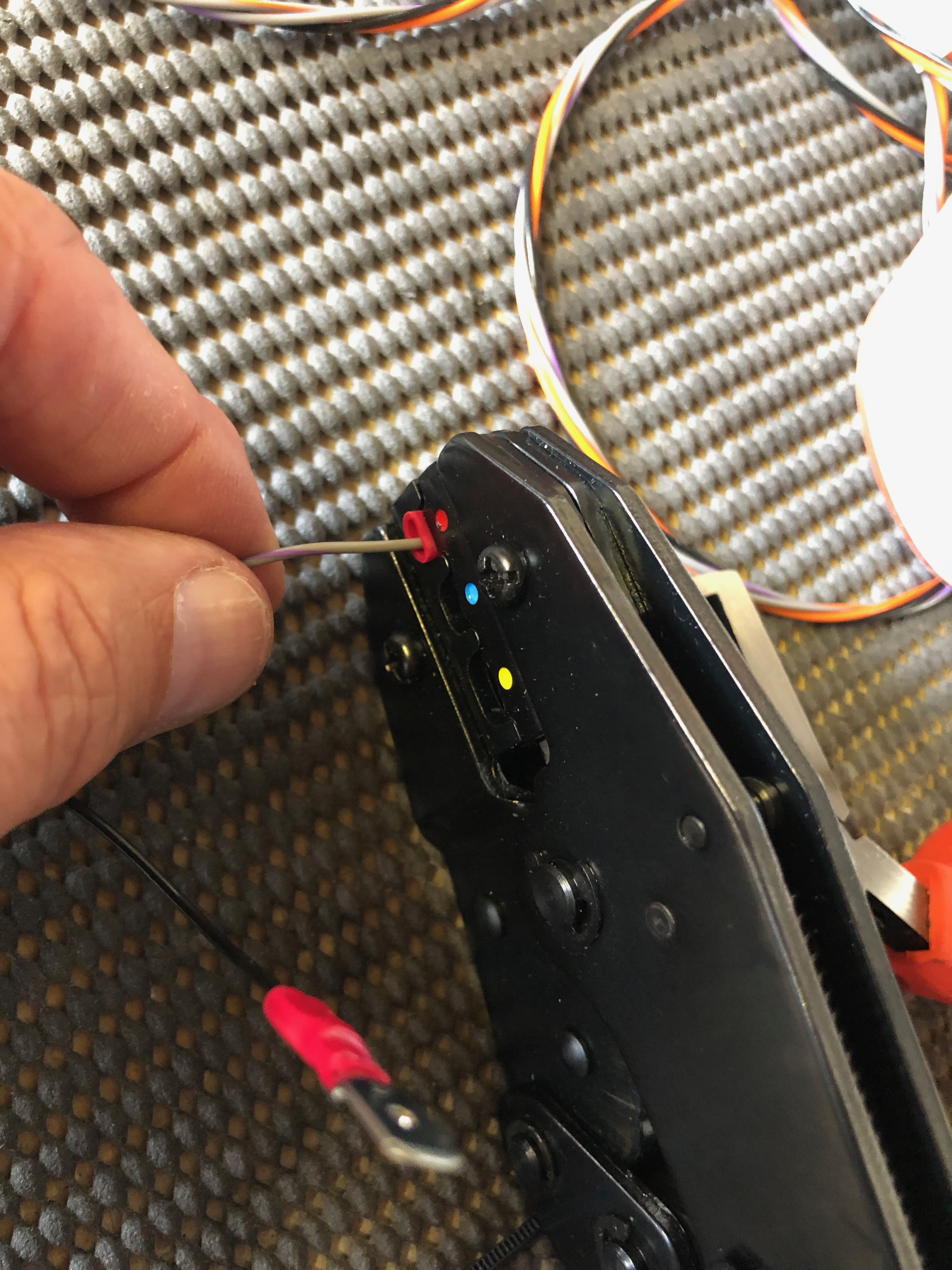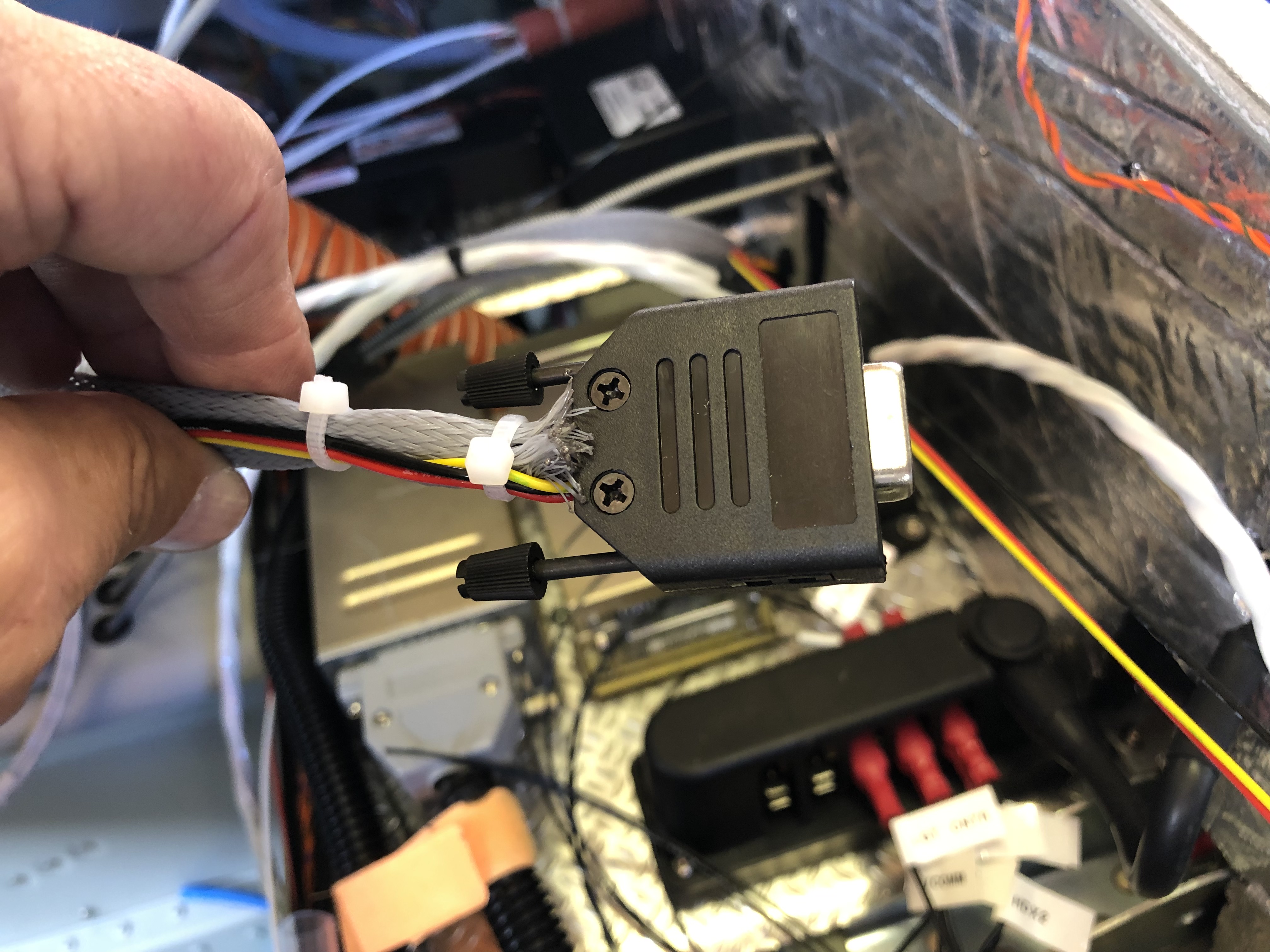 As mentioned previously I need to protect the SkyView from a surge from the Amp Shunt so I’ve purchased some 1 amp inline fuses. They are very small…… and make for a very neat protection solution when positioned inline.With all the wires ‘under the bonnet’ it’s difficult to make it all tidy… …but I layout all wire first to see where best to route them before trimming to correct length and terminating. All these will need to be secured too with stand-offs as required.The servo looms are next. I’ve installed the looms as far as the cockpit and now need to terminate each wire and make up the connector. It requires crimping the pins on each wire with a 4 way crimper.After crimping they are inserted into the D9 block……and the backshell is added. Fairly straightforward but you have to make sure that the crimps are secure. There are two of these, one for roll and one for pitch. Once made up they are plugged onto the SkyView network hub.Next up is to finish off the engine sensor connections. The correct pinout from the D37 connector is identified and the wire routed as described before trimming to the correct length and terminating. In this case a uninsulated spade connector that slips over the sensor connector. This is the LH CHT sensor……and the oil temperature sensor.A quick check that everything is working. The CHTs, EGTs, Oil Temp, Fuel pressure, Oil pressure, Voltmeter, Ammeter and autopilot have now been completed and work as expected.
