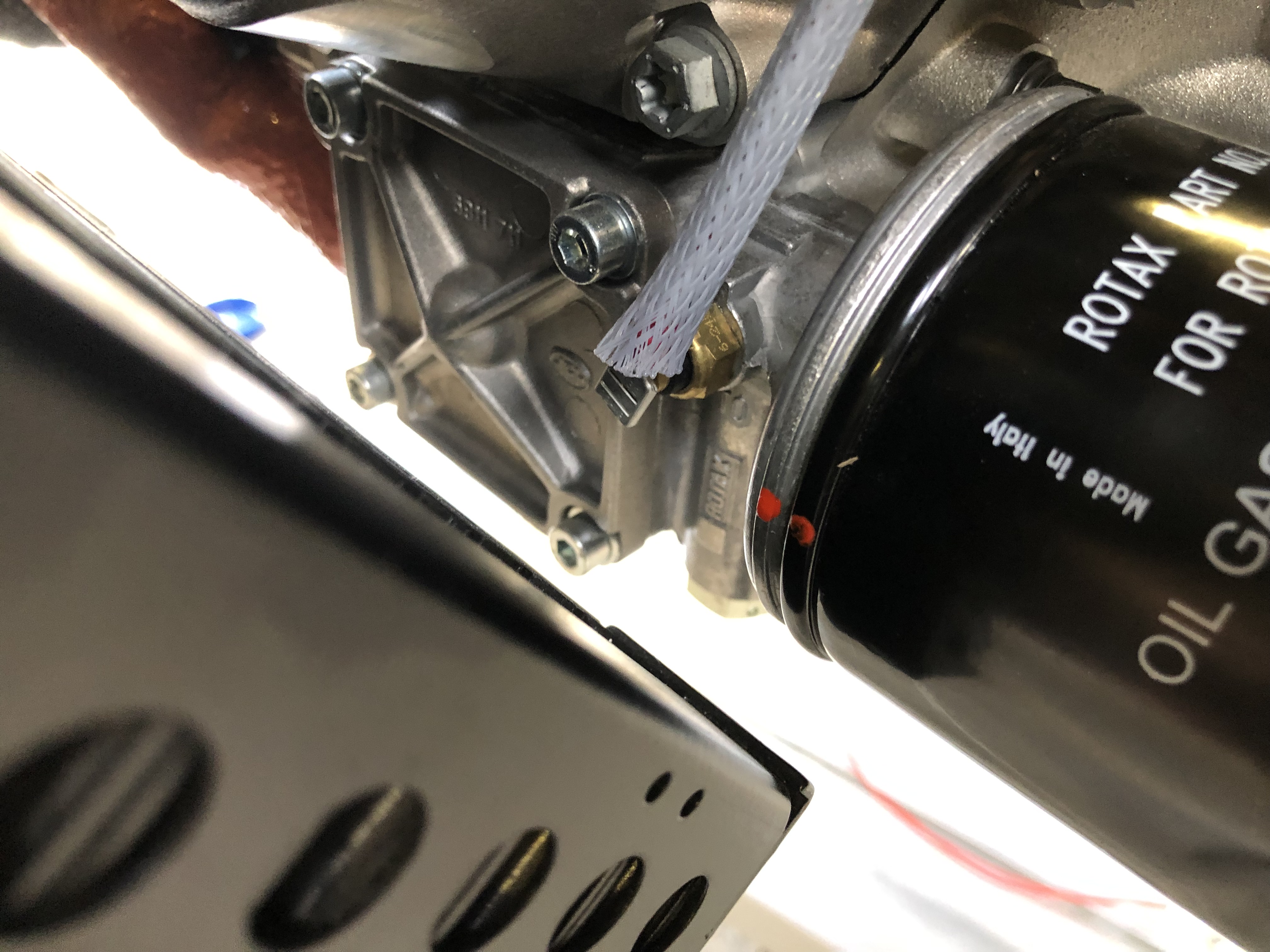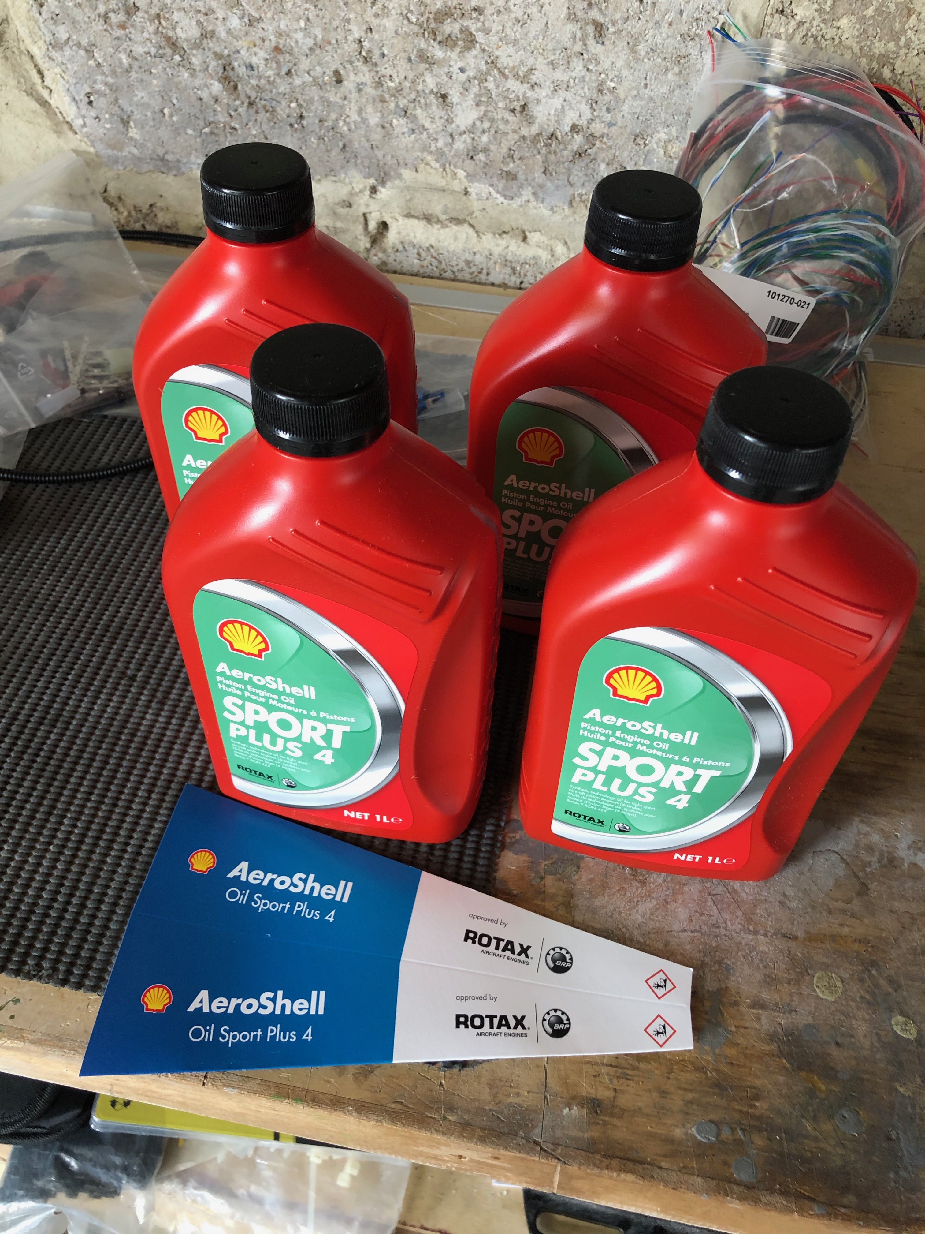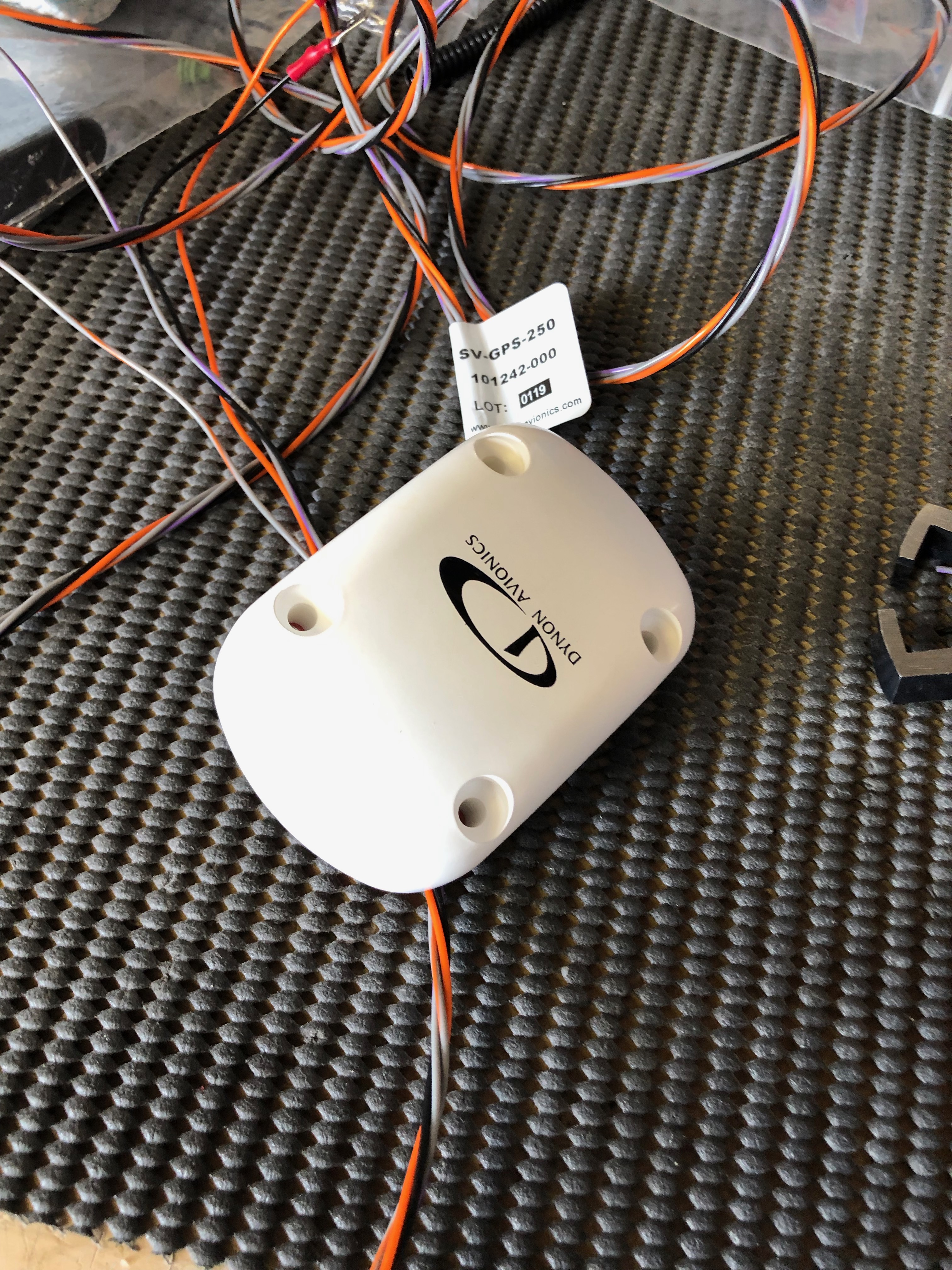 The Rotax engine comes with 4 litres of Aeroshell oil which I thought I’d add to the oil tank as a short break from wiring!I managed to get 3 litres in the tank but I will need to add more when the engine has been turned over a bit as there are a lot of empty oil pipes at the moment!After that very short break it’s back to wiring. This is the transponder loom which is a bit overkill for my needs. As you can see by the coil of wire there is a lot of unused wires but and a lot more has been trimmed from the length of the wires that are used! Once I had checked that it worked as expected I cut the unused wire off and covered the unterminated ends with heat shrink.Before adding a GPS receiver the SkyViews have no idea where they are in the UK, in fact they think they are in the USA! So I’ve taken the power and serial data leads from both SkyViews, spliced them and will connect them to the GPS. There’s a lot of cutting of wires and terminating them, mostly with fully insulated spade connectors using a special crimping tool.Once the GPS is connected a check is made on the connection to make sure it’s not reporting any errors and picking up satellite receivers ok..…and if by magic the SkyView now knows it’s in the UK! The system is reporting height and position correctly from my checks. If you look at the slip indicator you can see that its not in the middle and that’s because the ADAHRS isn’t quite level. There isn’t an adjustment that can be made to correct this so I’ll shim the unit.I’ve positioned the aircraft on a piece of level ground and I’ve shimmed the unit to make sure that it’s level and reporting correctly which it now is.