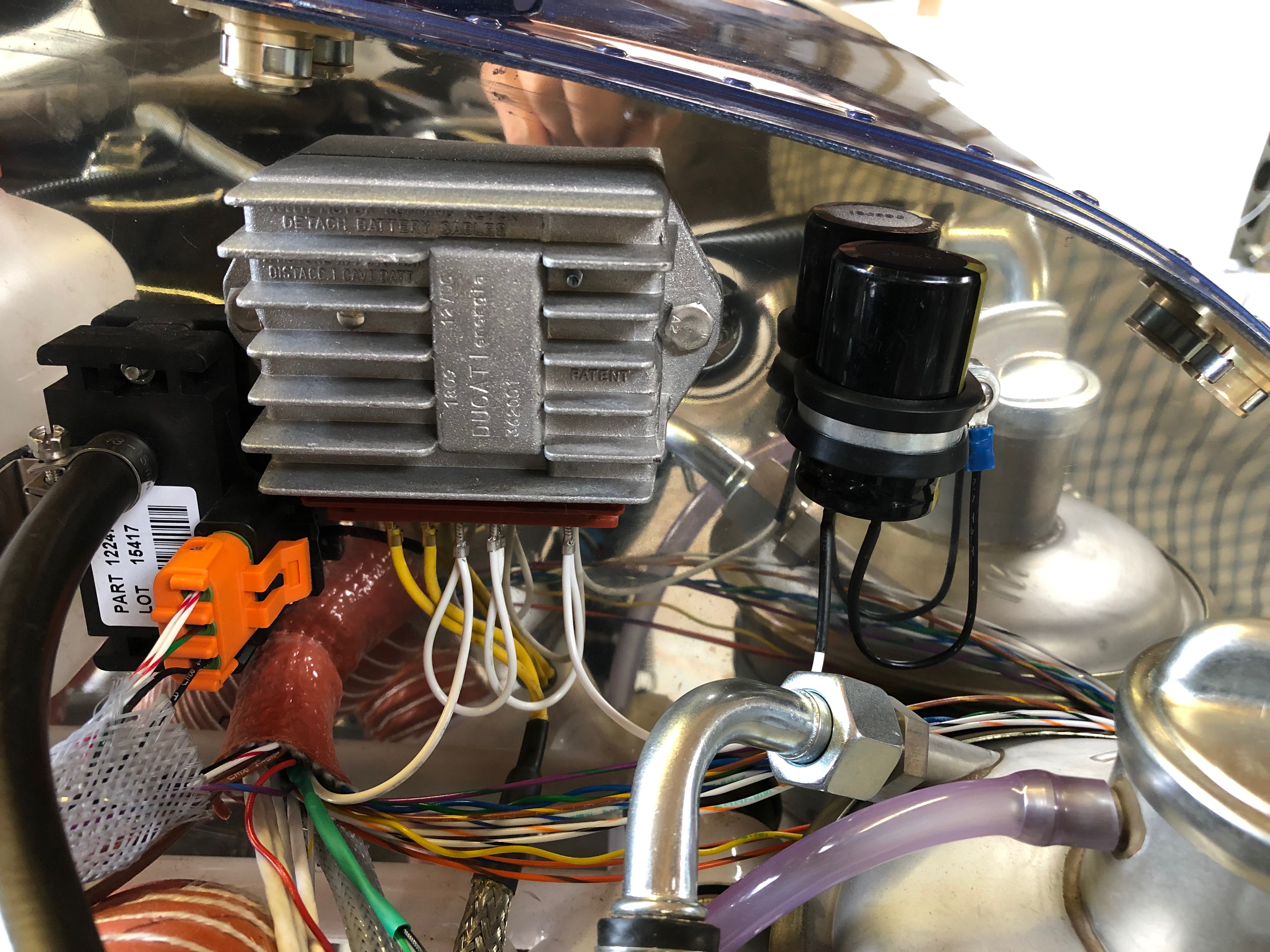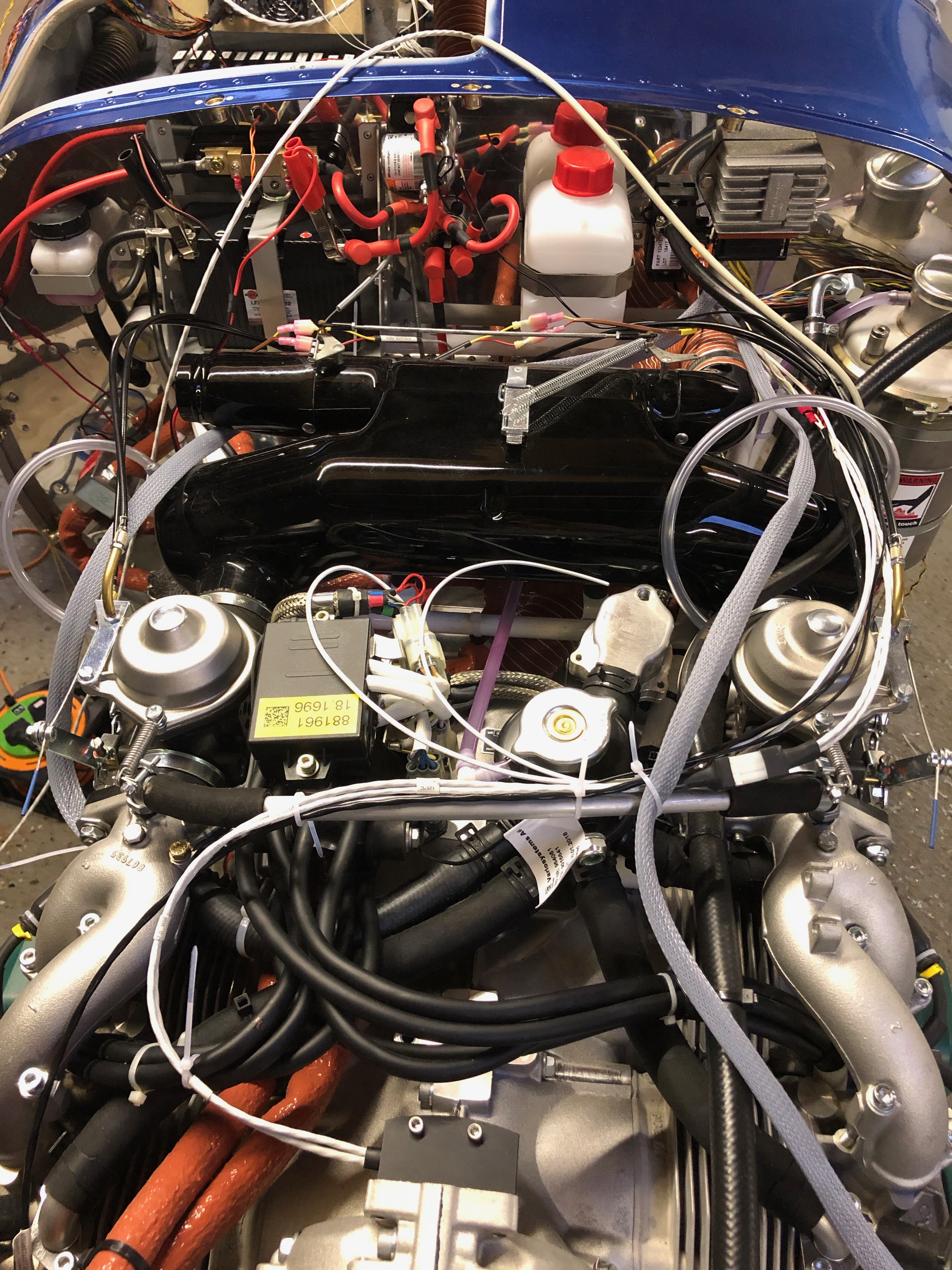 Time to wire up the power side of the electrical system. I’m reusing the wire that I have leftover from the other circuit wires that were trimmed back. There’s plenty to do the job although not a unified colour as long as they are labelled it will be ok.My new friend. A Dymo Label Manager 200 that I bought some years ago. It’s been invaluable and luckily I managed to get some label cartridges.The +ve bus with 11 of the circuits completed.The circuit breakers connected, some tidying will be required but it’s mostly complete.The complete panel powered up for the first time. The system shows a 7 amp power drain which is roughly what I had calculated.My DPD delivery was a day late but got delivered at 10am so I could get on with the wiring of the Transponder and Radio with the coax.The radio coax cable runs through conduit in the fuselage and is terminated with a TNC connector that I’ll do tomorrow.With all the cables protected with sleeving or conduit and secured in place I can fit the interior trim.The rear of the cabin. I’ve checked the radio/headset loom and it works fine so I need to mount the LEMO headset connectors and then I can fix the interior panels.Right side of engine. All the sensors are connected except the Tachometer, soft start module, magneto wires.Left side of engine. Looks a bit busy but with a bit od tidying it will look a bit neater. Quite pleased with the progress so far.