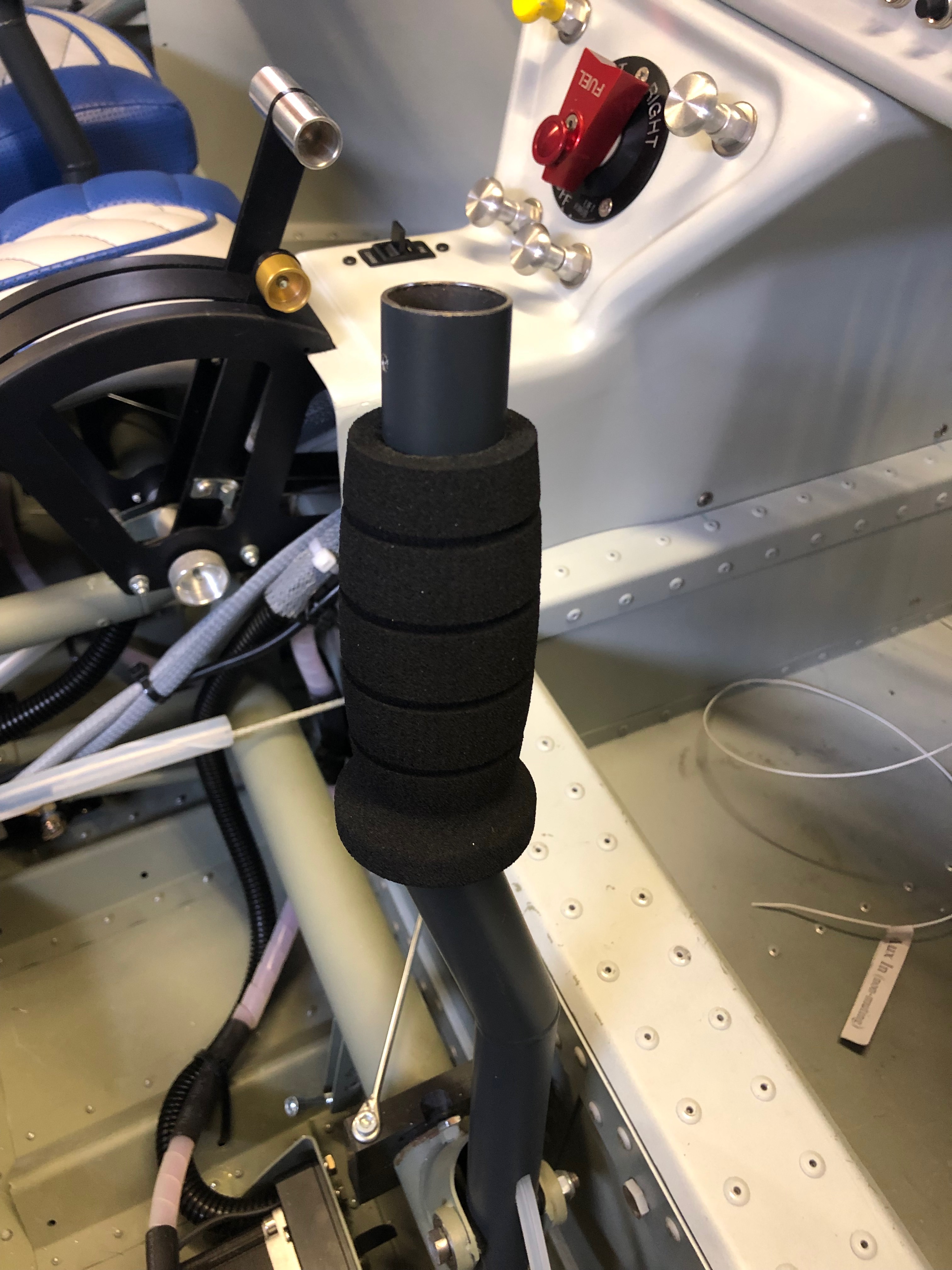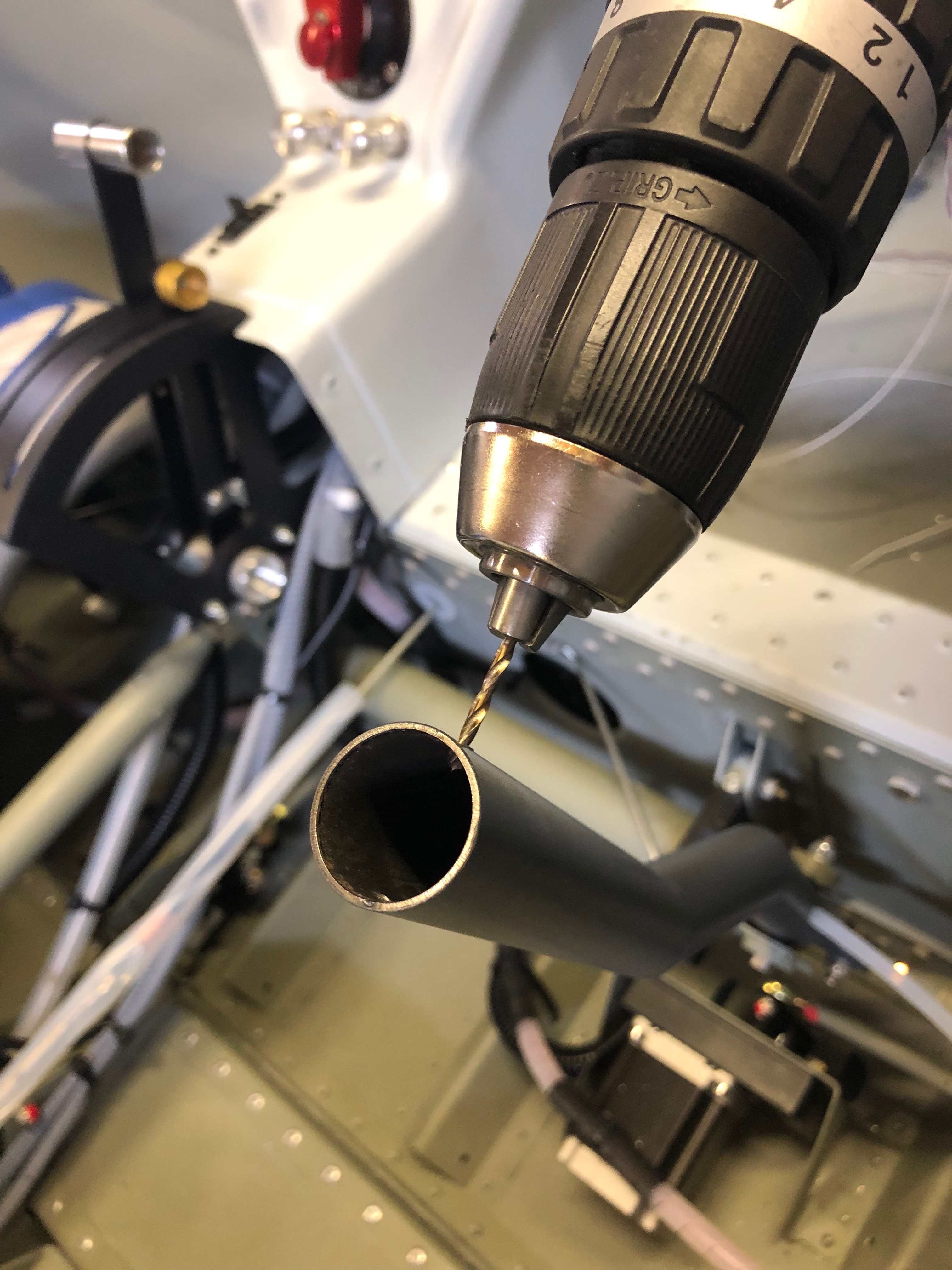 After a lot of head scratching the trim system is finally wired just need to wire up the control sticks to finish off a very long day.The Bristell trim kit supplies G405 stick grips but I wanted to add a autopilot disconnect switch on the stick so went for the G407 instead.It’s suggested that that the stick grips are riveted to the stick but I think it better to drill and tap so you can remove them easily at a later stage if required.I’ve used M3 button head screws to secure the top.The stick grips are slid onto the control stick but are a very tight fit so require a bit of lubrication to ease the process.With the stick grips fitted I just need to wiring them up. Pleased with the result so far..Another batch of wires. This time eight the need to be soldered together. The only difficult bit it mapping the differing colours between the control stick and the wires that are connected to the trim controller.Soldering complete just need to record the colour mapping for my documentation.