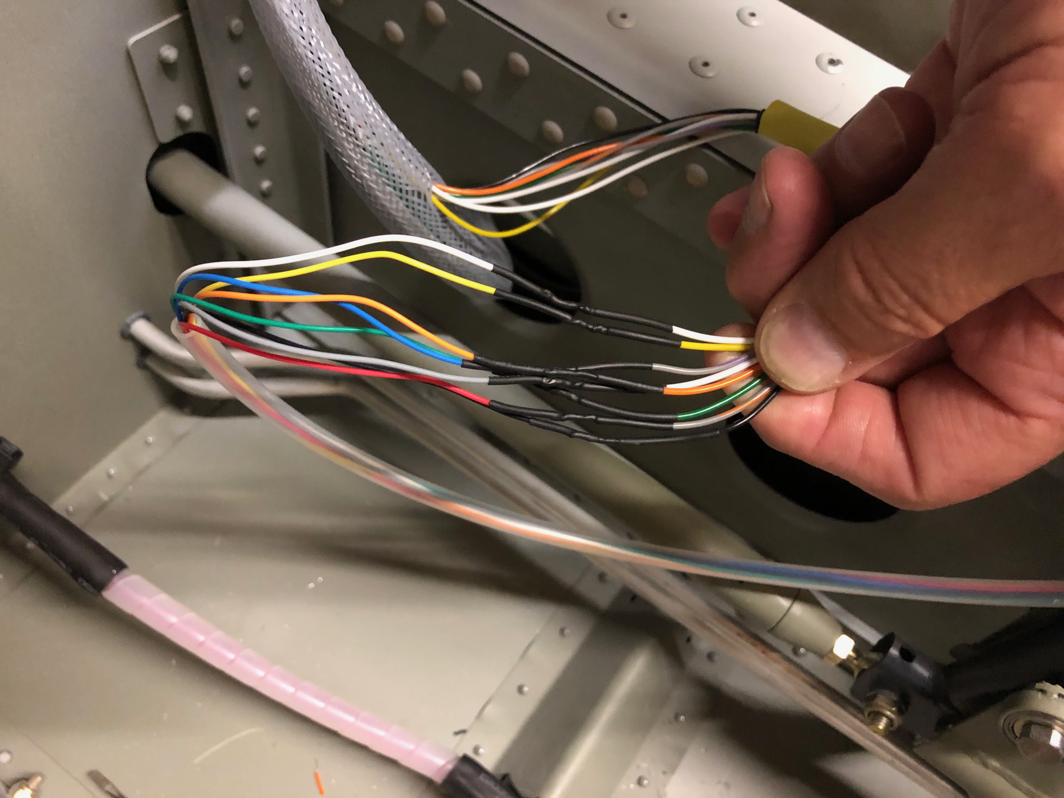 it’s time to fit the wings so I need to add the connectors to the trim, landing lights and heated pitot looms that I have already run in. I’ve also run in the radio coax cable so need to terminate that and carry out a final tidying up of the wiring.