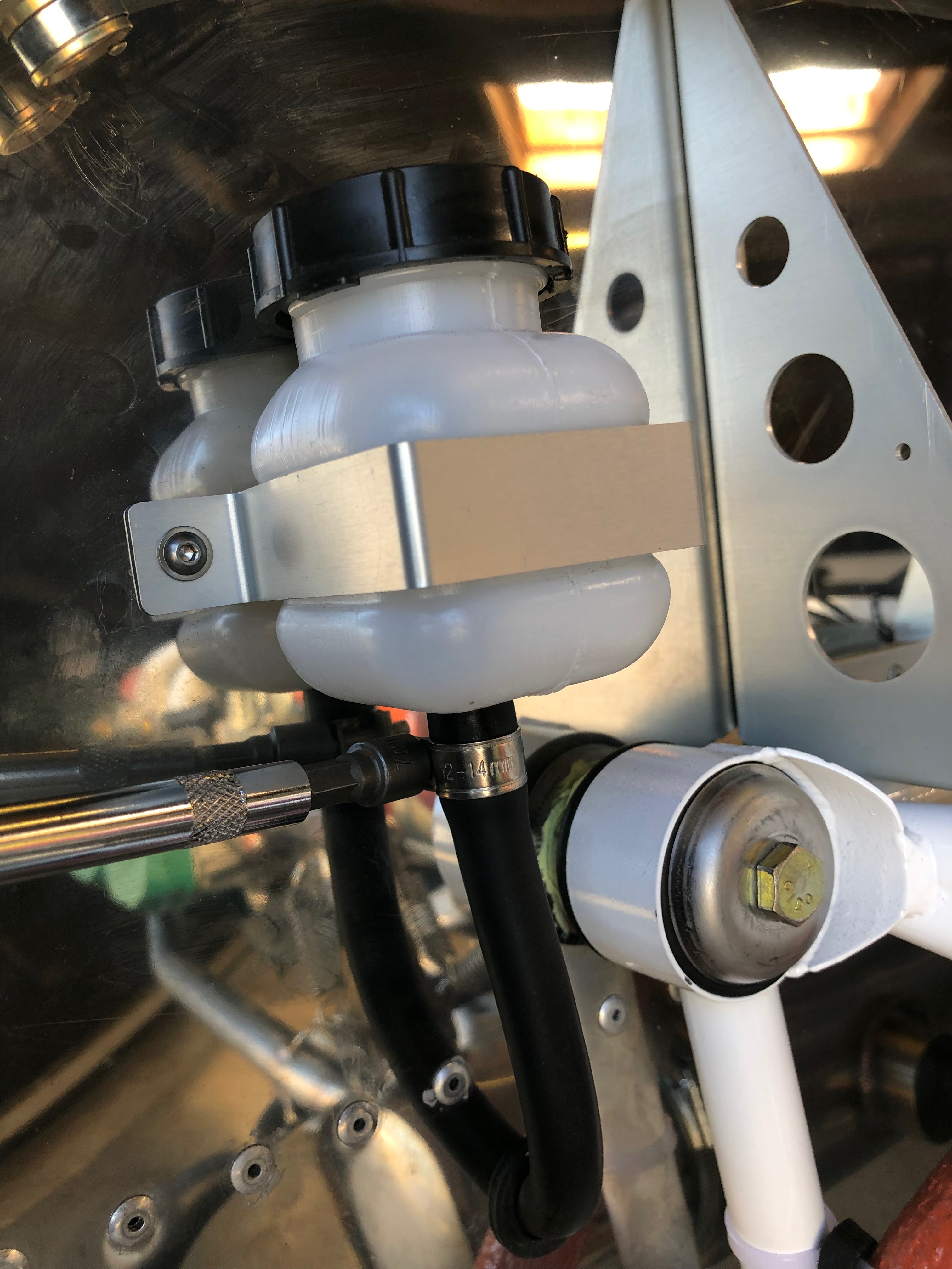 The bottle is clamped to the firewall and the pipe clamp is tightened.