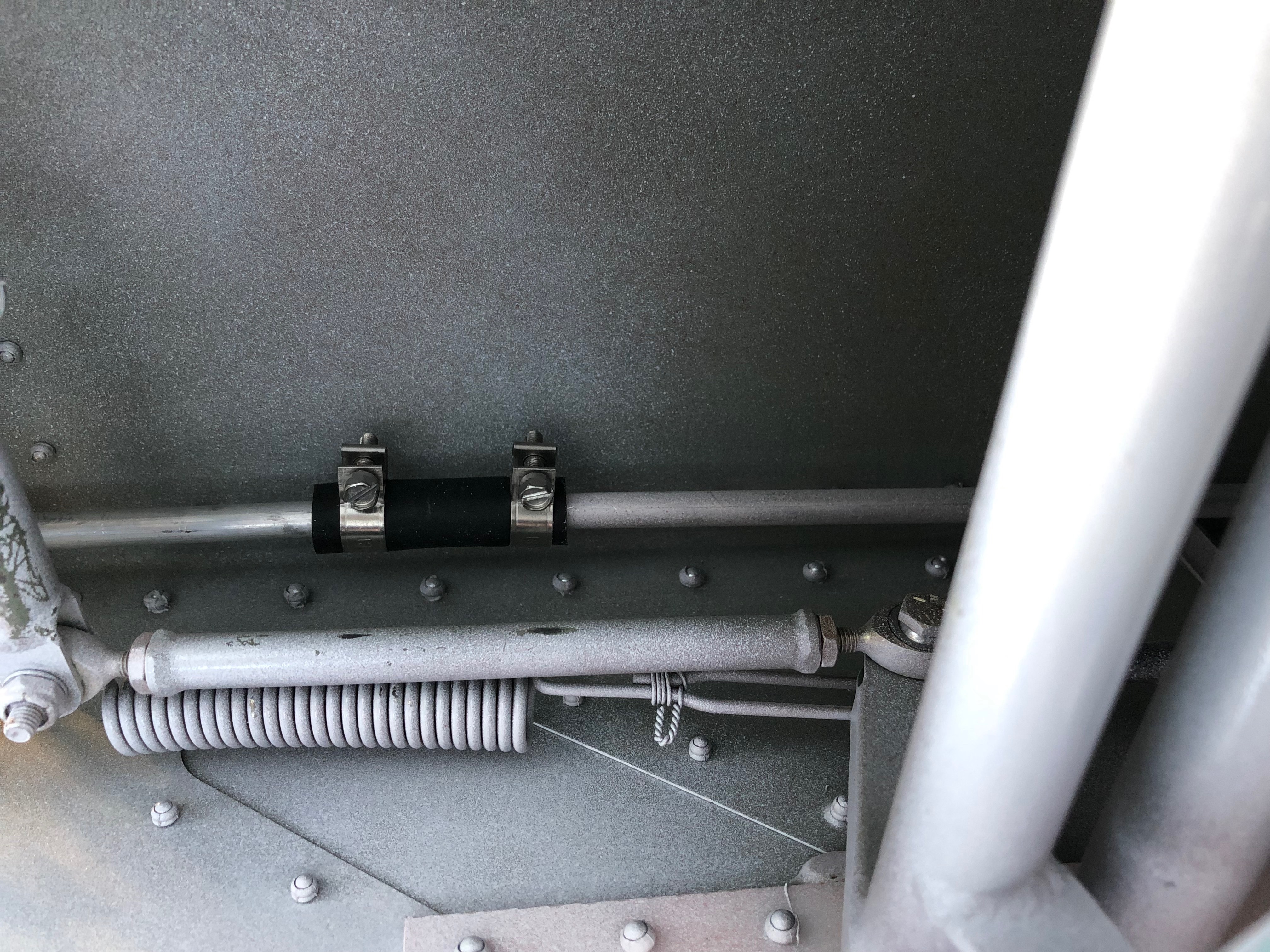 It’s a tight squeeze in the nose wheel tunnel but with perseverance the connection is made and the hose clips tightened. This piece of tubing doesn’t need the fire sleeving because it is behind the firewall.