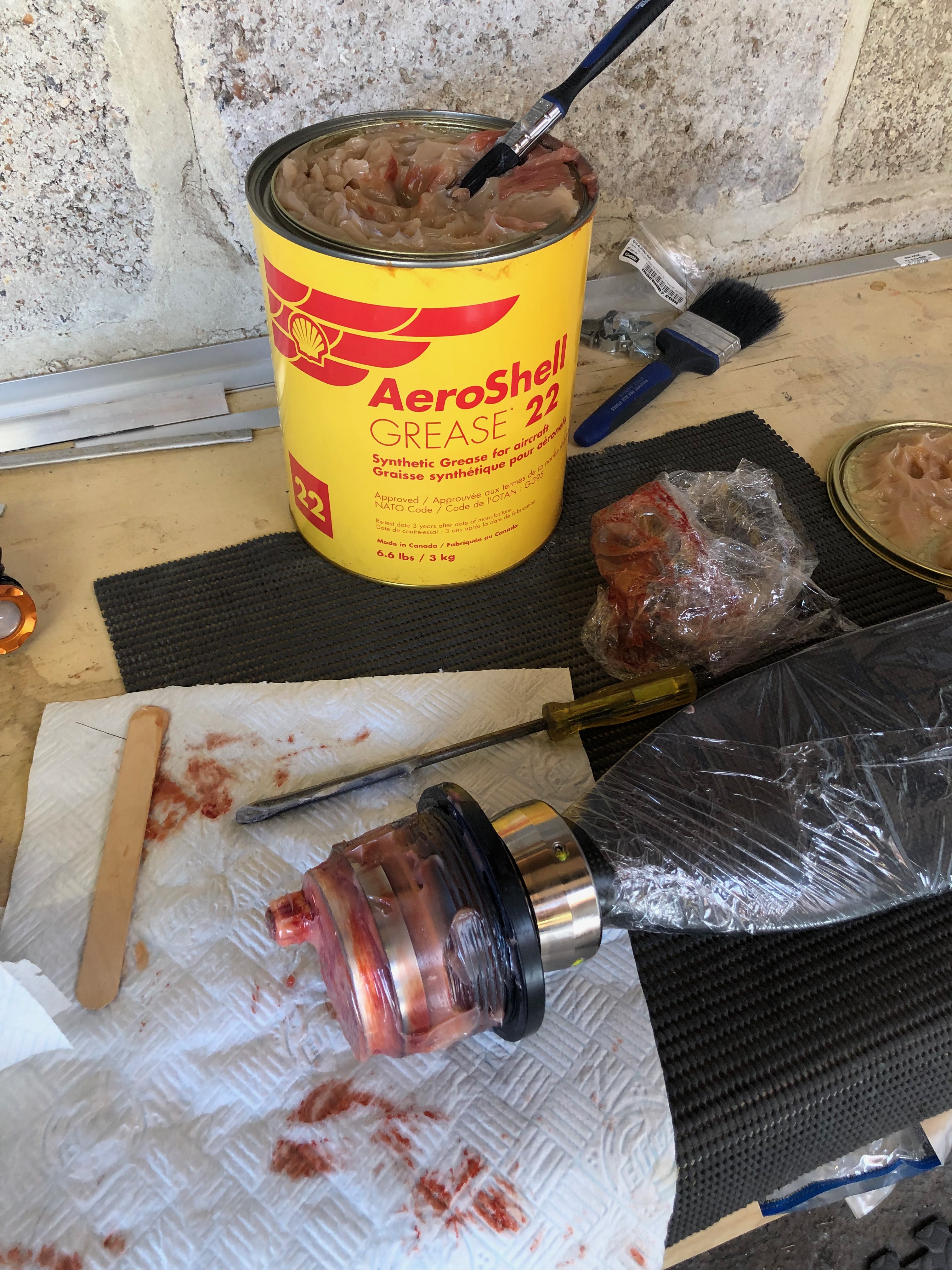 The main job today is to fit the propellor blades. Luckily the Aeroshell Grease that was supposed to have been delivered next Monday was delivered a couple of days ago so I can get on with it. Once fitted I can purge the oil system and add the antifreeze.