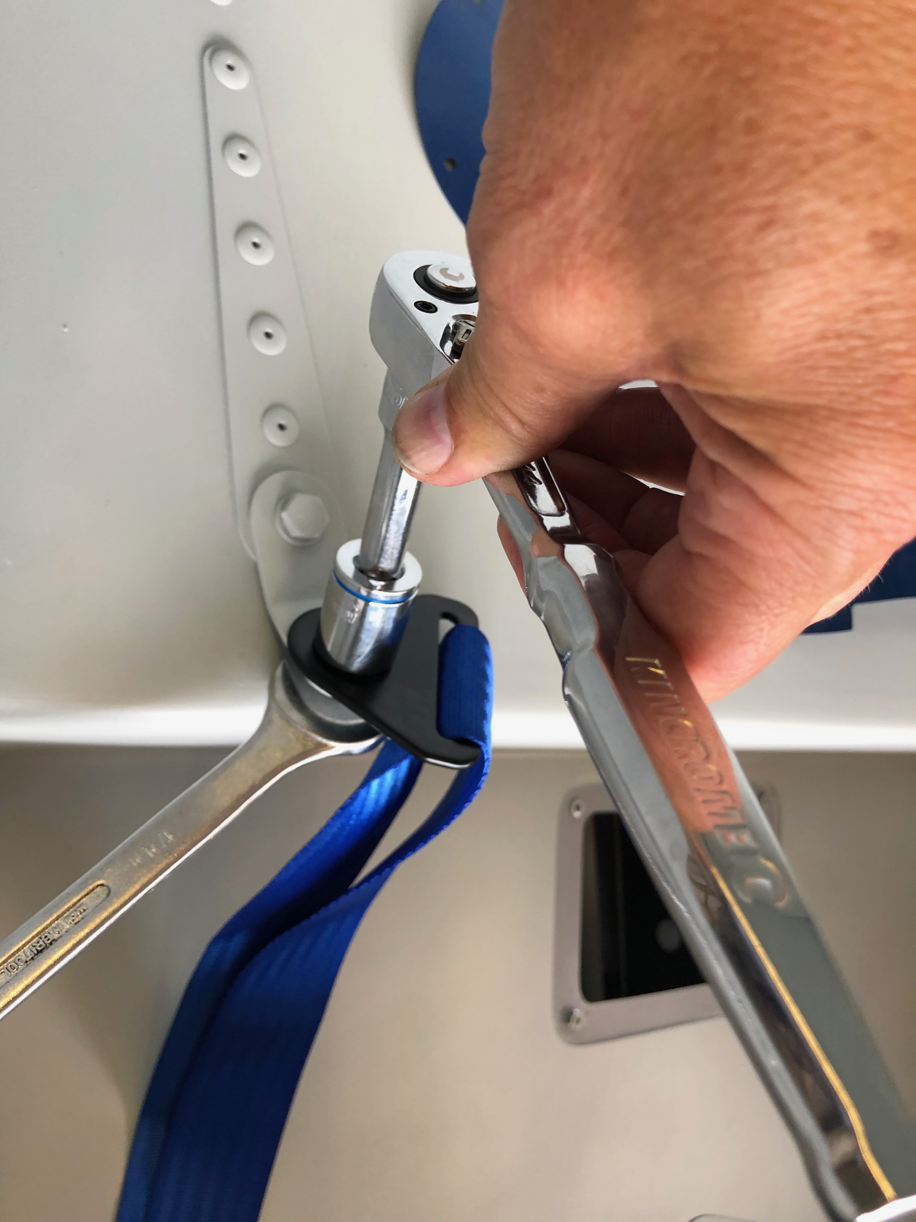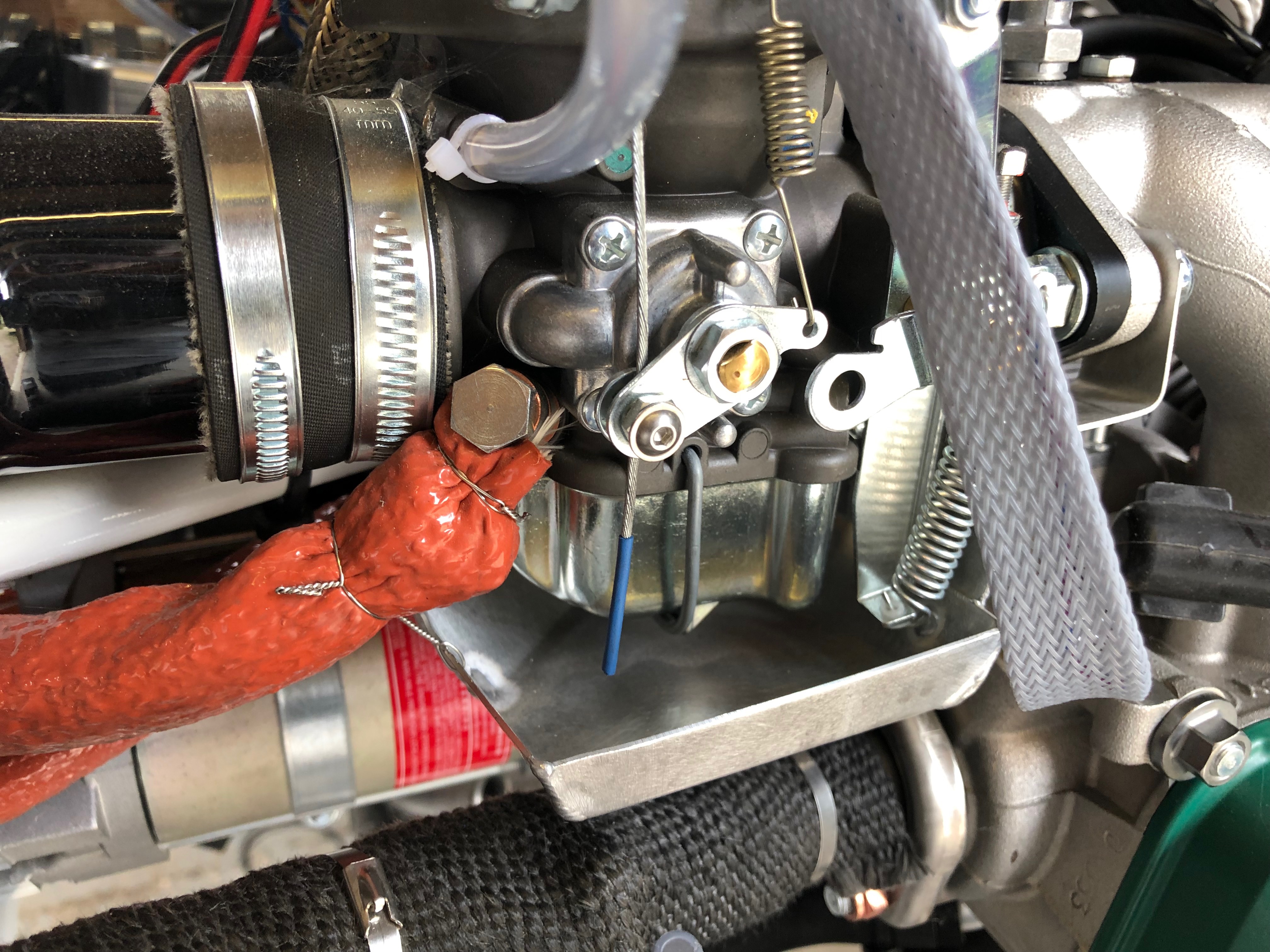 The order that I’ve been waiting for was an 18mm x 1 fine pitch die to cut a little more thread on each water pump pipe. Fairly easy to do but I make to make sure that the die went on perfectly straight otherwise it might start cutting a new thread!All done and sealed with Loctite. I’m going to leave it in position for a couple of days to fully cure before touching the pipes. Hopefully this will ensure I won’t have a repeat of the leak.Now onto the floats. I spoke to CFS aero who are the importers for Rotax engines and they sent me a full set of new floats to replace those that were in my carbs. This is really a precautionary measure as I don’t know if the floats fitted are defective or not but I didn’t want to find out on the first flight! To get to the float chambers I have to undo some of the work that I’ve done previously. First off are the carb drip trays……revealing the float bowl retaining clip. This is prised off to allow the bowl to be removed.The flaots sit in the bowl and rise and fall on pins to retain them. Brings back memories when I used to play about with motorcycles when I was younger.When refitting must make sure that I don’t damage this mechanism and ensure that the seal is seated correctly.Then a refit of the carb drip trays before repeating the procedure on the other carb.All done and back to home it was before my intervention.Next on the agenda is to fit the seatbelts. Three bolts and nyloc nuts are used to secure them.The top hole in the retaining mount is opened up to 11mm before the bolts can be fitted.The top retaining strap is fitted first and tightened to pinch the fitting and then just eased off slightly to allow for some movement in operation.The bolts with a ‘shoulder’ are then fitted to to the left and right seatbelt retaining brackets.The top strap is too long to use as is so the seatbelt webbing needs to be modified by cutting and running through the retaining adjusters.To stop the webbing flying in service I’ve sealed the ends with superglue. This may work ok but if it fails after some use I’ll seal with heat instead but this seemed a good solution.With both side now done is was time to try out on a ‘real’ pilot so Pilot Pooh was given first go…