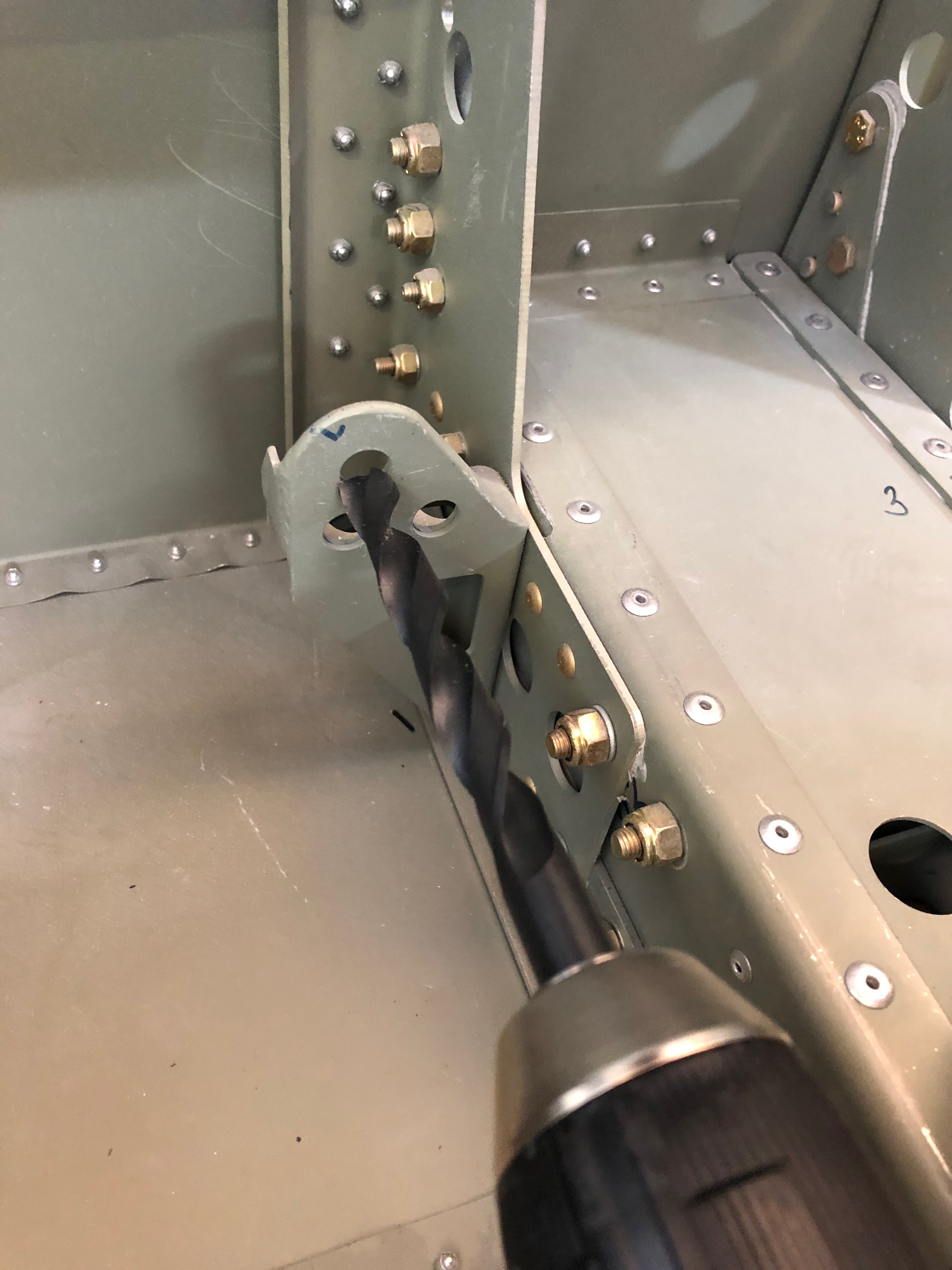 I’ve cleaned up the gasket ready for the refit.After running a thin bead of Wellseal around the pump mating surface it’s bolted back on and the bolts are torqued up.The radiator is remounted……and all the pipes reconnected,The water system has been refilled and I’ll leave it for the weekend to see if the reseal has been successful.Next is to finish fitting the glare shield. It’s a tricky job as there is only a very narrow band to secure it too but it has to be done ‘blind’. I’ve decided the best way to do this is to position the glare shield and use a very small drill to drill a pilot hole and just mark the fuselage skin. Removing the glare shield reveals if I’ve drilled in the correct position. If so I can open it up and fit the Rivnut. Seven screws are used to secure the glare shield and I’m considering using a couple more to secure the shield to the instrument panel. That’s a job for Monday.