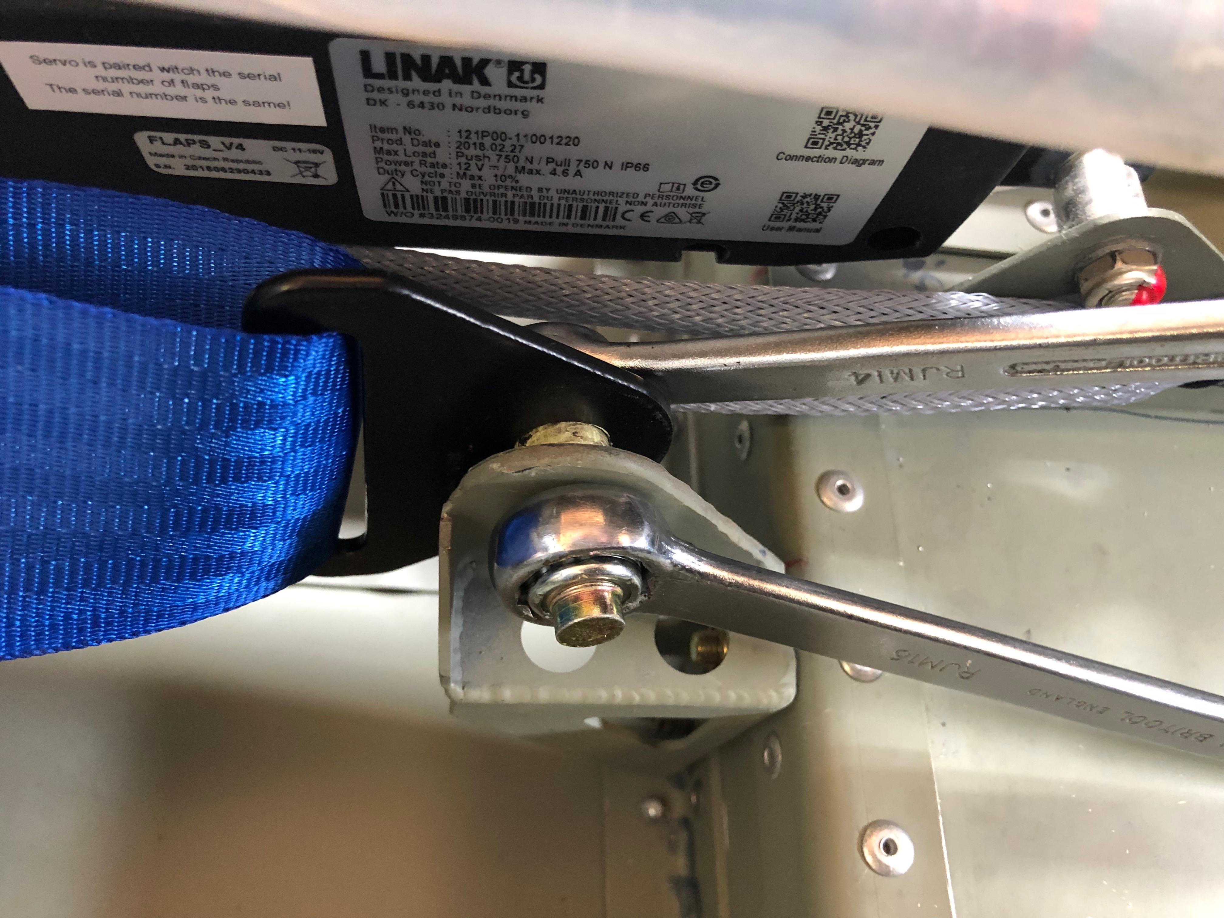 Three of the split pins are easy to install but top right is impossible without taking the control unit off so this one was installed upside down but still does the job of retaining the bolt should it work loose.