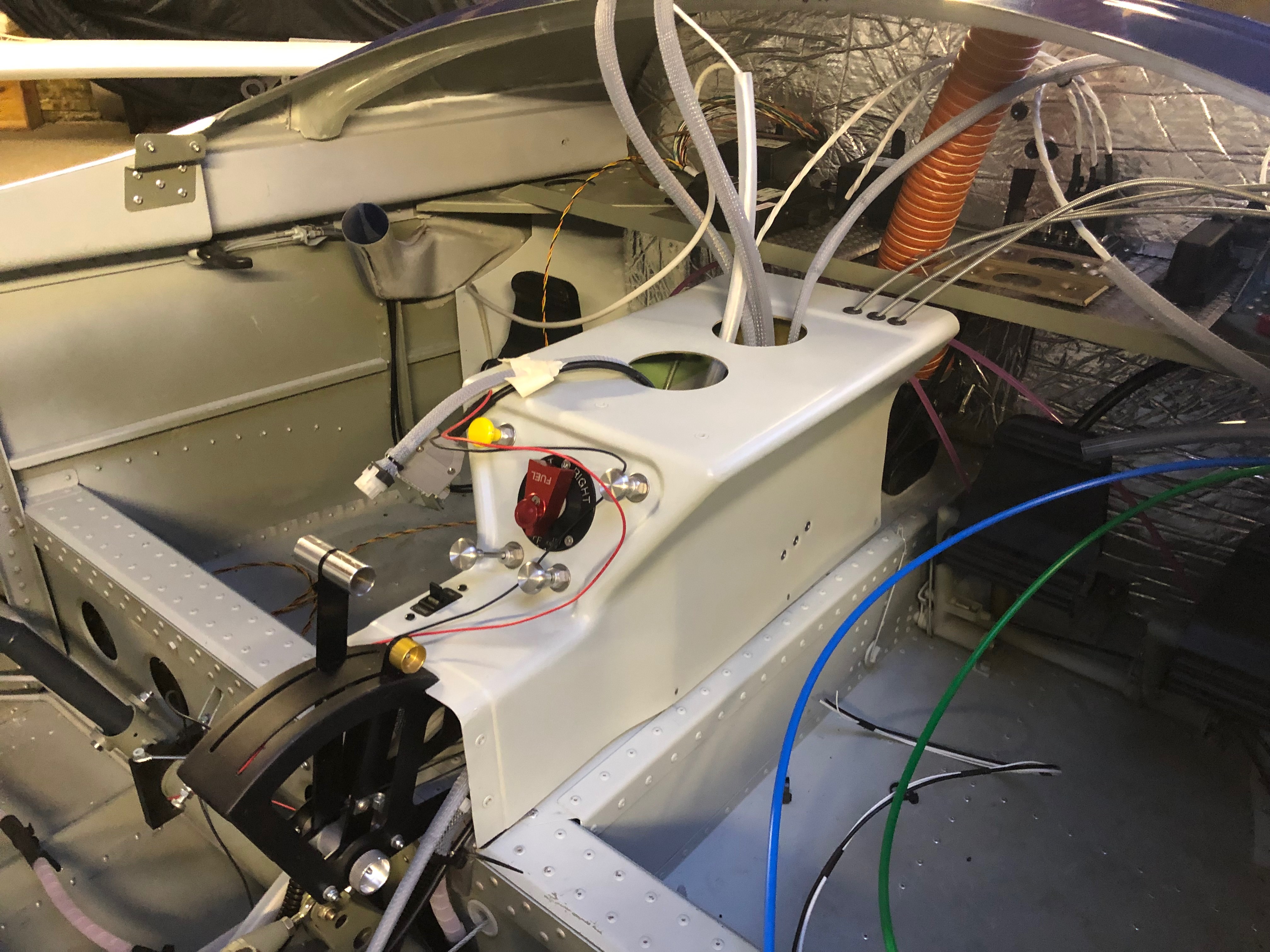 Some time ago I had assembled the Andair fuel selector but hadn’t installed it as it wasn’t needed at the time. Today was the day to mount the selector and various controls into the centre console.