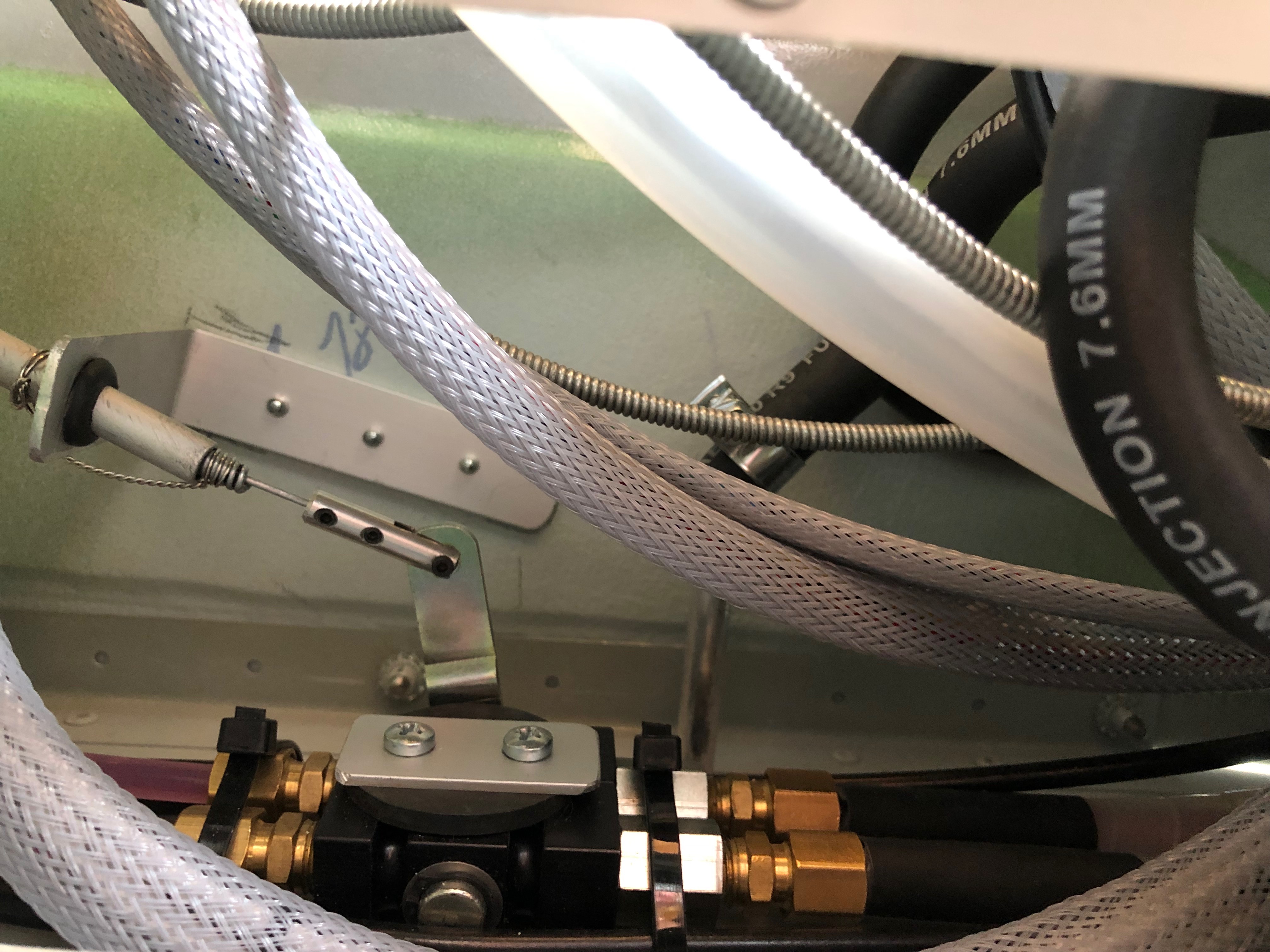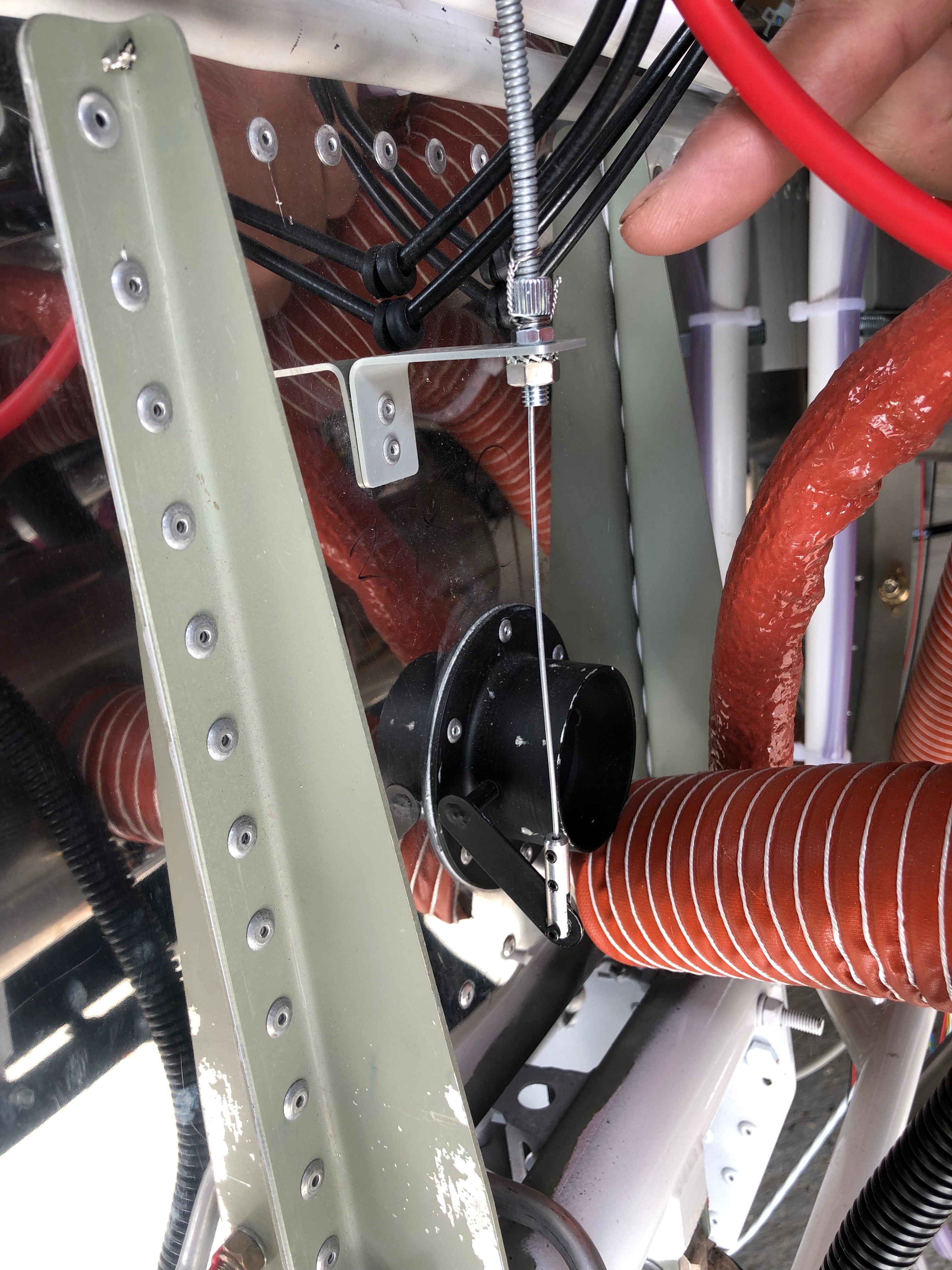 Today we were concentrating on fitting the centre console, ensuring that all the control operate smoothly for the carb heat, cabin heater and demister. The park brake needed some special attention as it needed to operate with push on and pull off. This required the cable to exit the front of the console and loop back in. This would make it operate in the correct source but there would be about 100mm of unsupported cable which would bend and it’s unlikely to operate correctly. The other connection that would need a bit of thought would be the connection to the demister as it had a protrusion to connect to and not a hole like the other controls.